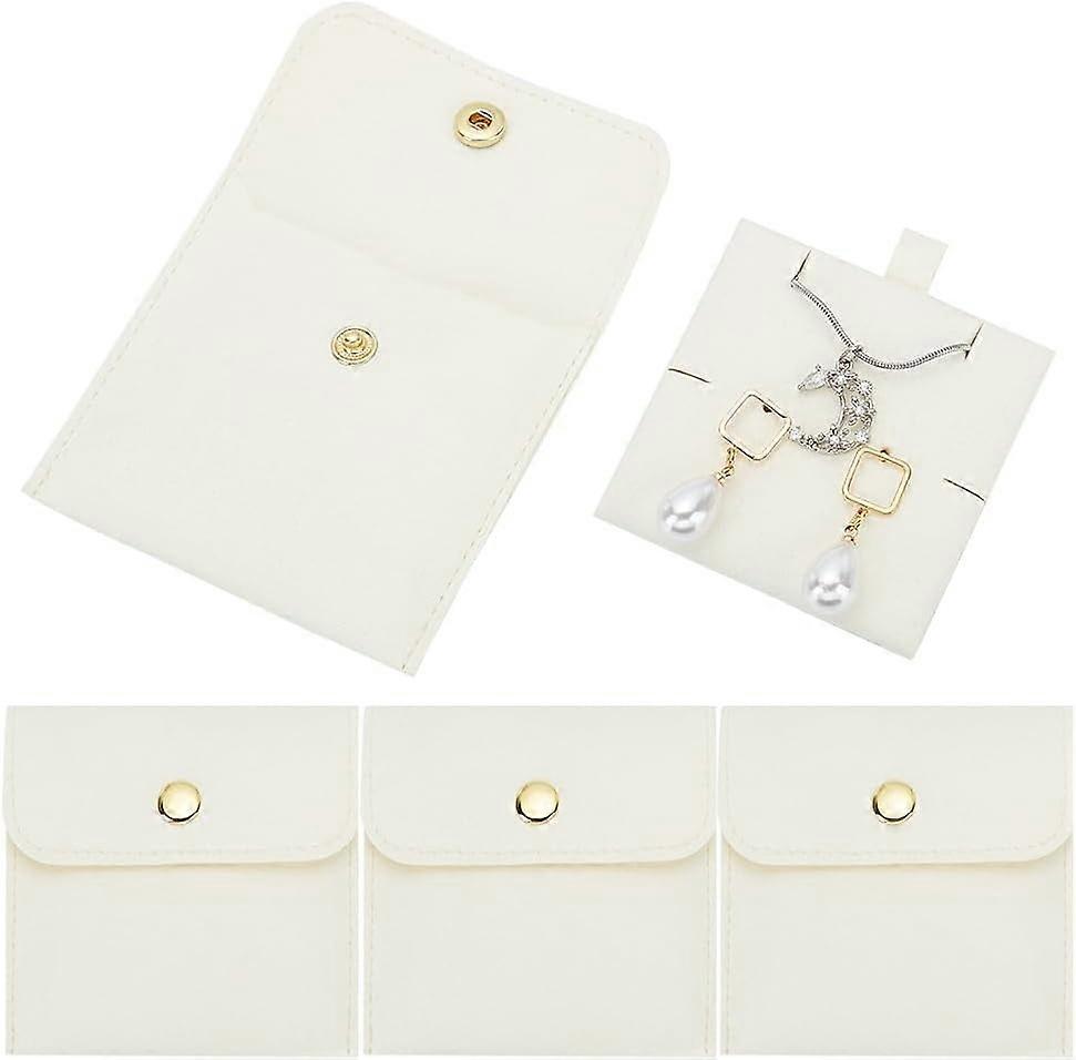 4 Sets Microfiber Button Bags 3.14" Square, with Insert Pad, Light Yellow - for Jewelry, Bracelets, Necklaces, Earrings, Gift Packaging
