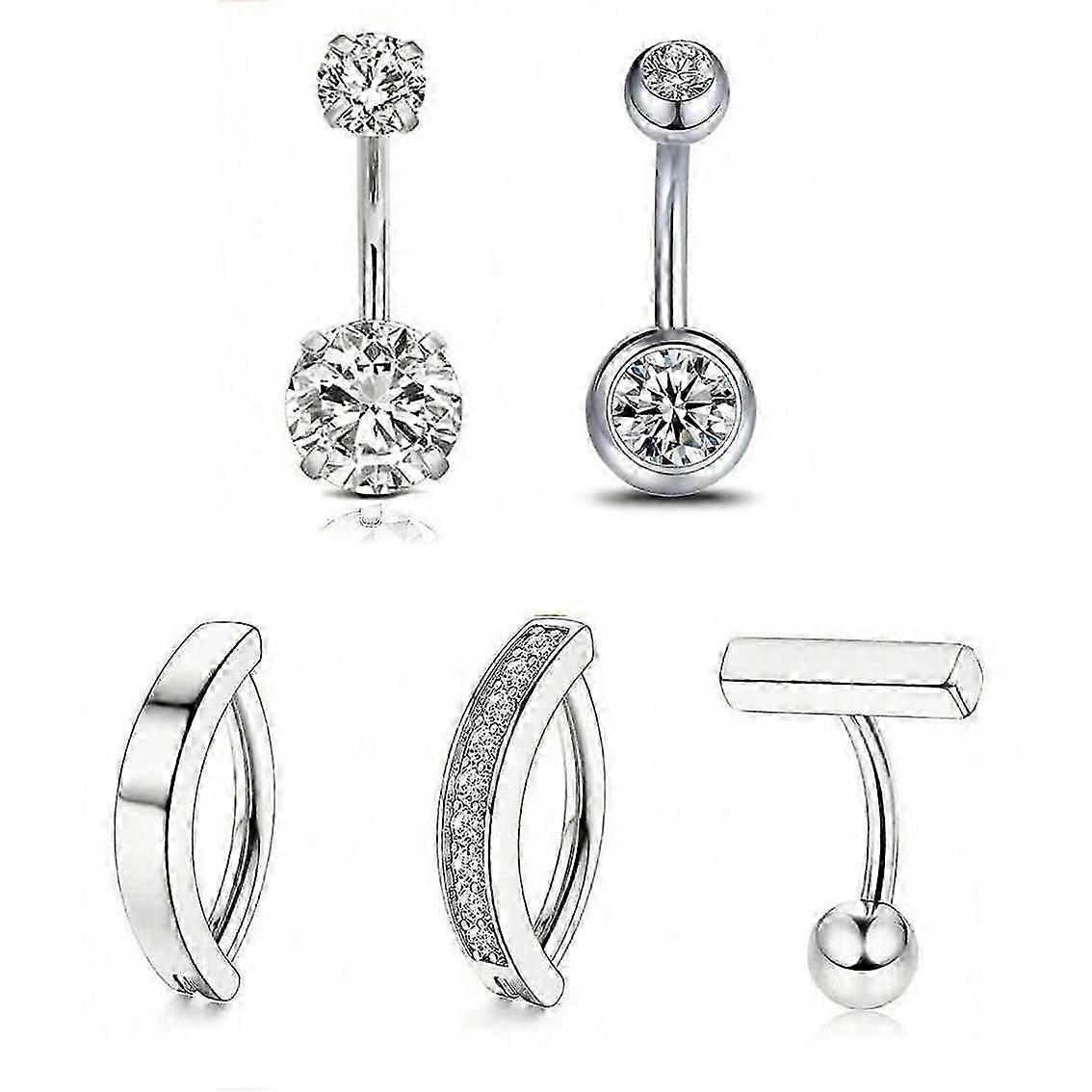 5pcs Silver Gold Belly Button Rings for Women Surgical Steel Dangle Clicker