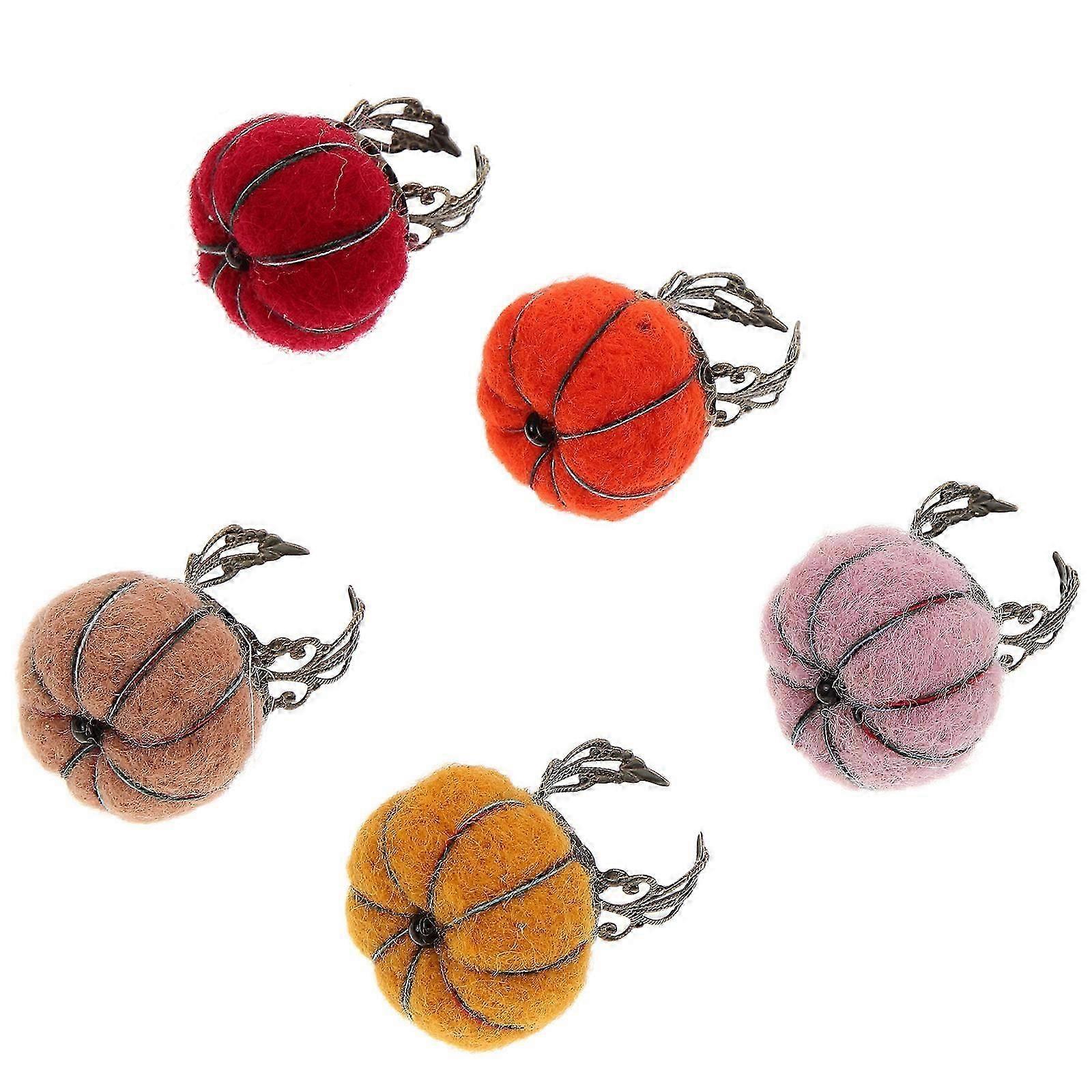 Pumpkin Shape Sewing Pin Cushion with Finger Ring for Women Artisans 1Set