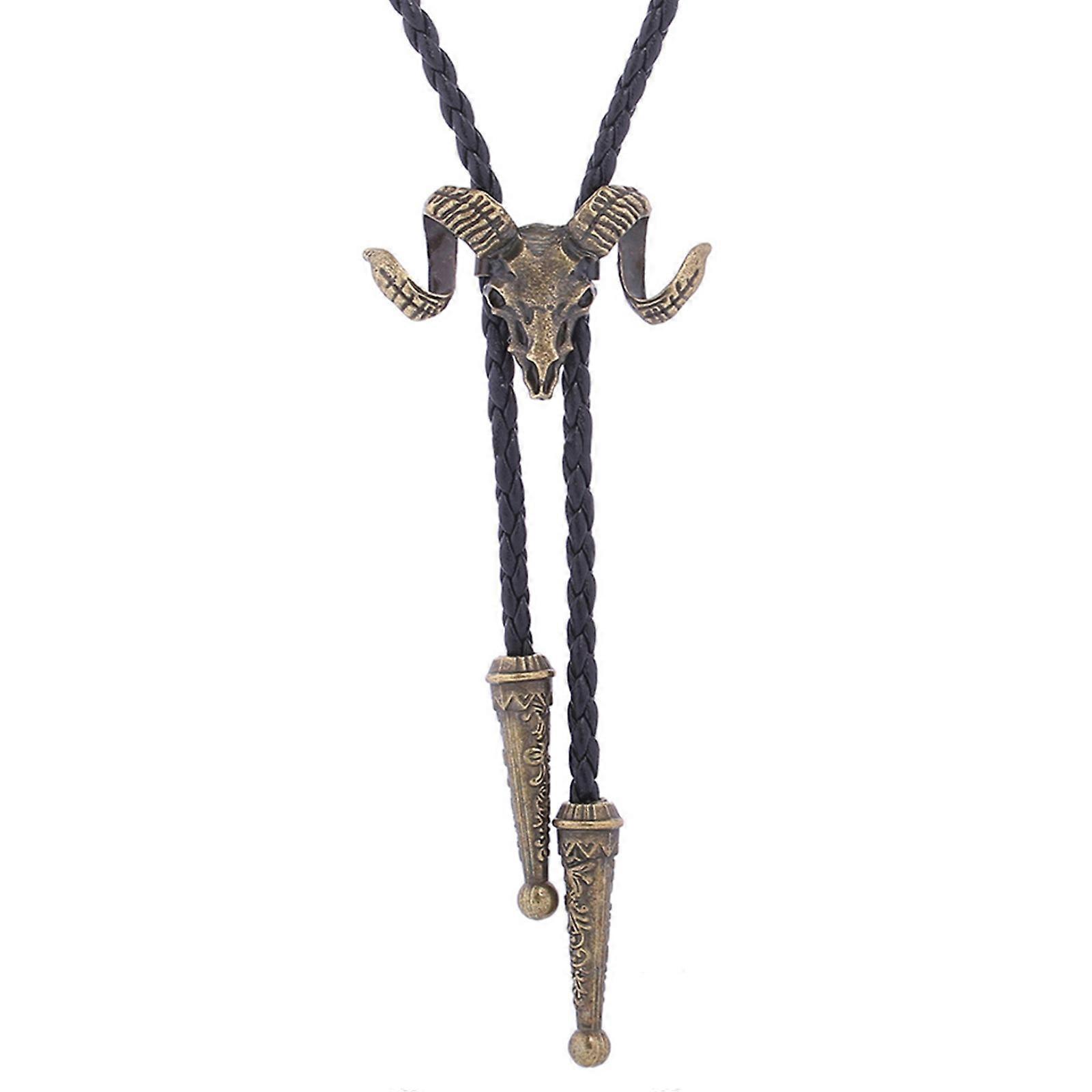 Braided Shoestring Bull Bolo Tie with Metal Bull Buffalo Cowboy Necktie Necklace Country Style Bolo Tie Buffalo Cowboy Multicolor