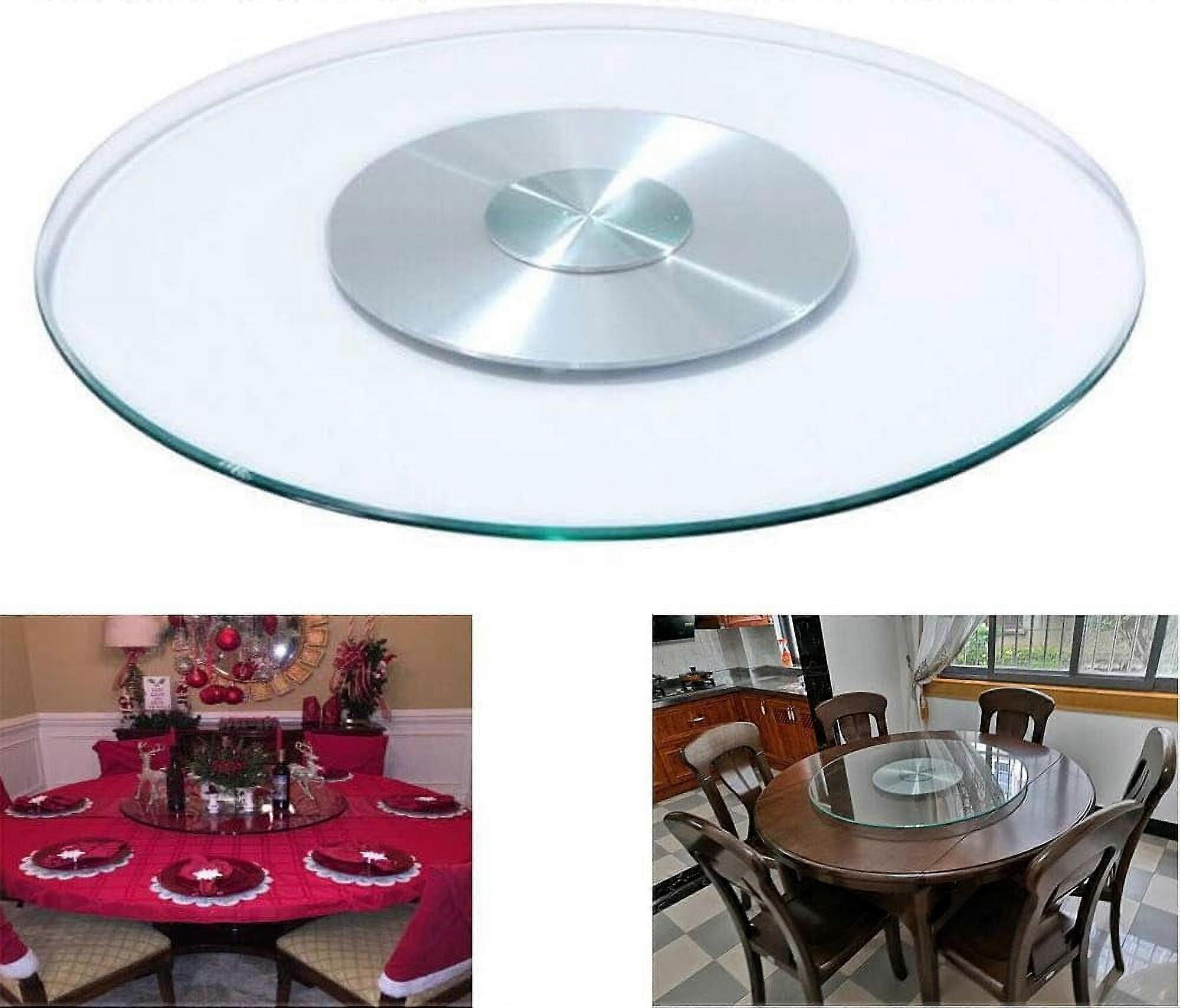 Large Lazy Susan for Dining Table, Glass Turntable with Aluminum Alloy Bearing, Smooth Swivel, 20"-47" Diameter