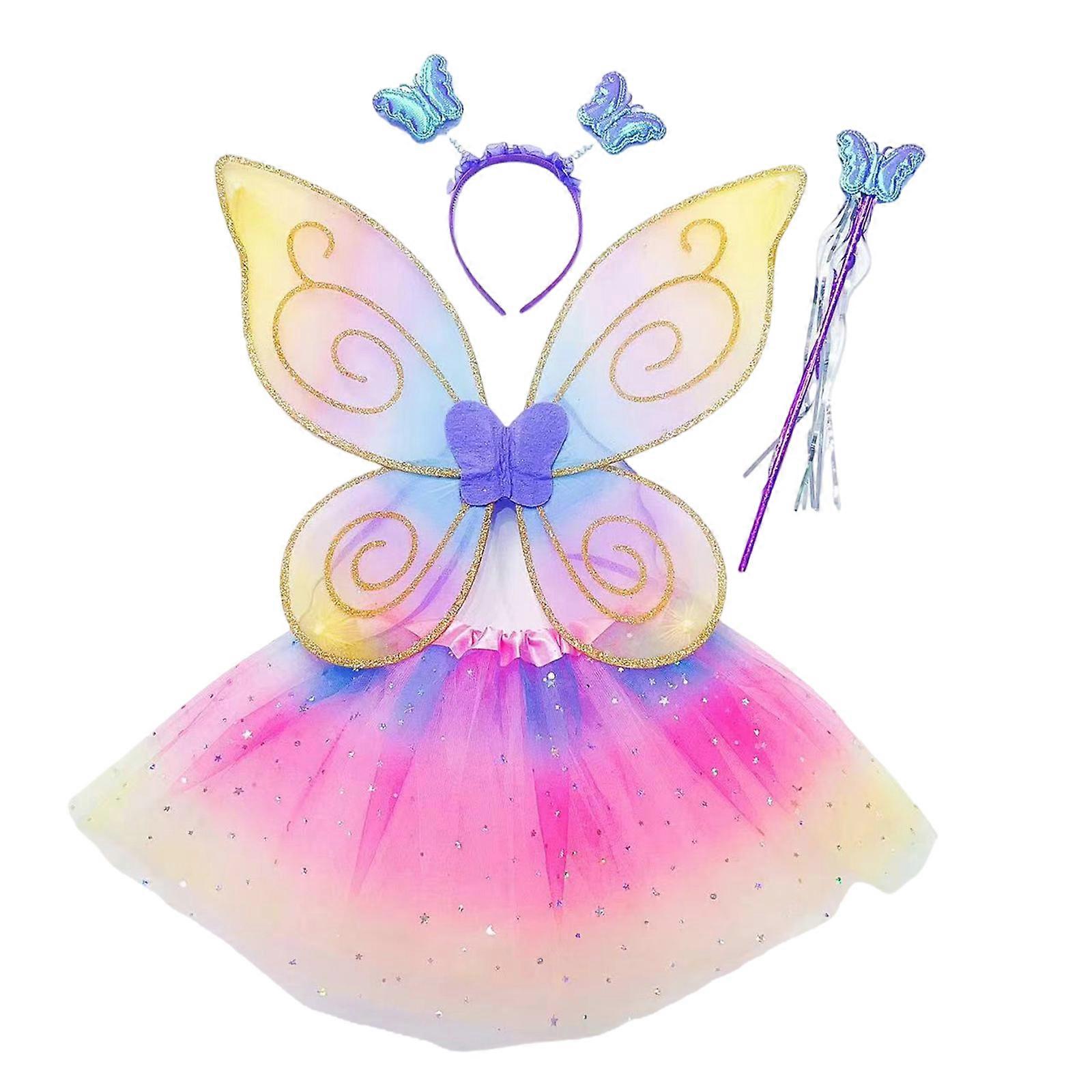 Features: Butterfly wing princess costume,elastic strap angel wing,fairys wand magics wand,tutus skirt,headband,elastic strap allows the set better for kids girls most. Quality materials,make from quality polyester materials,comfortble skin-friendly,soft,light in wearing, easy to move, cosplay and dance,comfortable to wear . Package include:fairys wing,magics wand,butterfly headband,tutus skirt. Widely applications,perfect for outdoor festival, fairys tale theme parties, halloween costume, photography props, girls birthday gifts, dance stage performances, fairys princess cosplay, daily wear, school performances, etc. Wonderful gift ,best surprised gift for kids girls on birthday halloween party or other special festival ,girl's princess dreamlike . Specifications: Materials:Polyester Package Includes: 1Piece Magics Wand 1Piece Butterfly Fairys Wing 1Piece Butterfly Headband 1Piece Tutus Skirt note: Please allow 1-2cm errors due to manual measurement. Due to the differences betweeen different monitors,the pic may not reflect the actual color of the item.