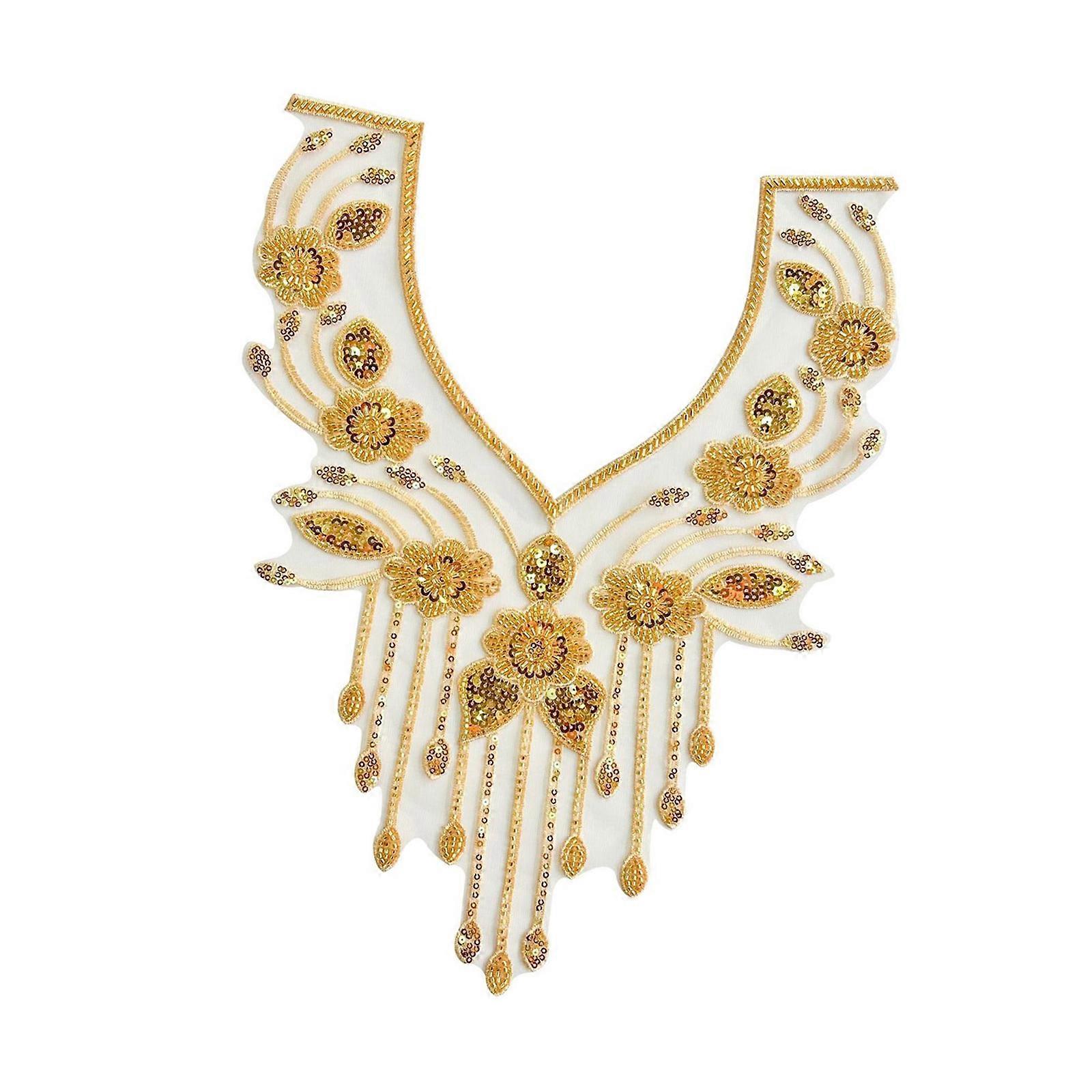 Embroidery Applique Sequins Beads Sew on Collar Patches Wedding Dress Applique For Wedding Dress Evening Gown Decoration Multicolor