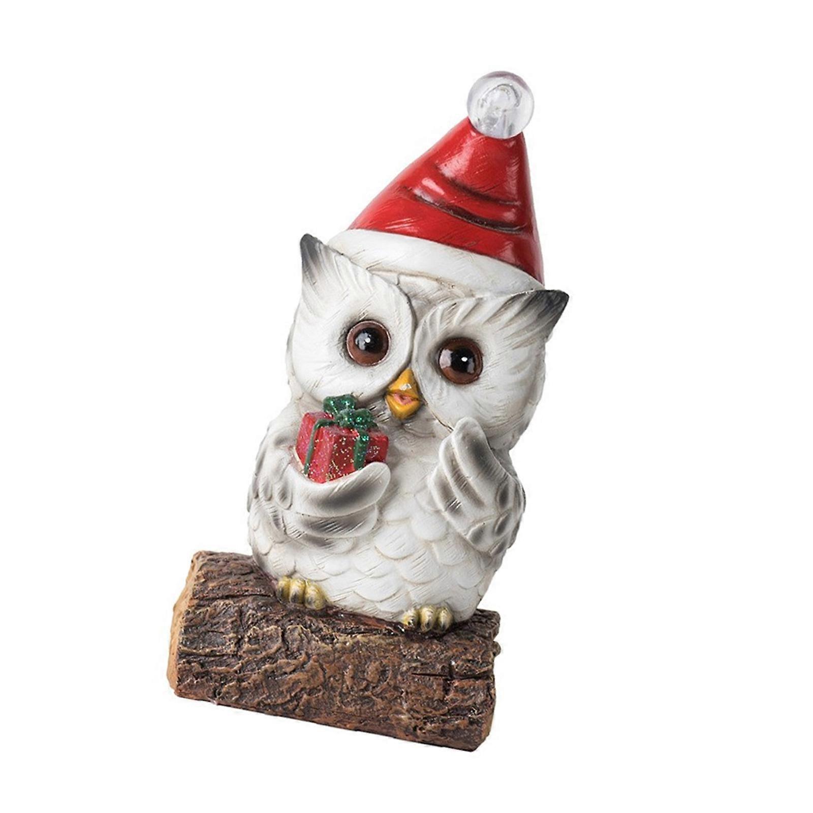 Owl Statue with LED Lighted Santa Hat for Festival Home Accent Resins Miniature Figurine Christmas Decorative Ornament Multicolor