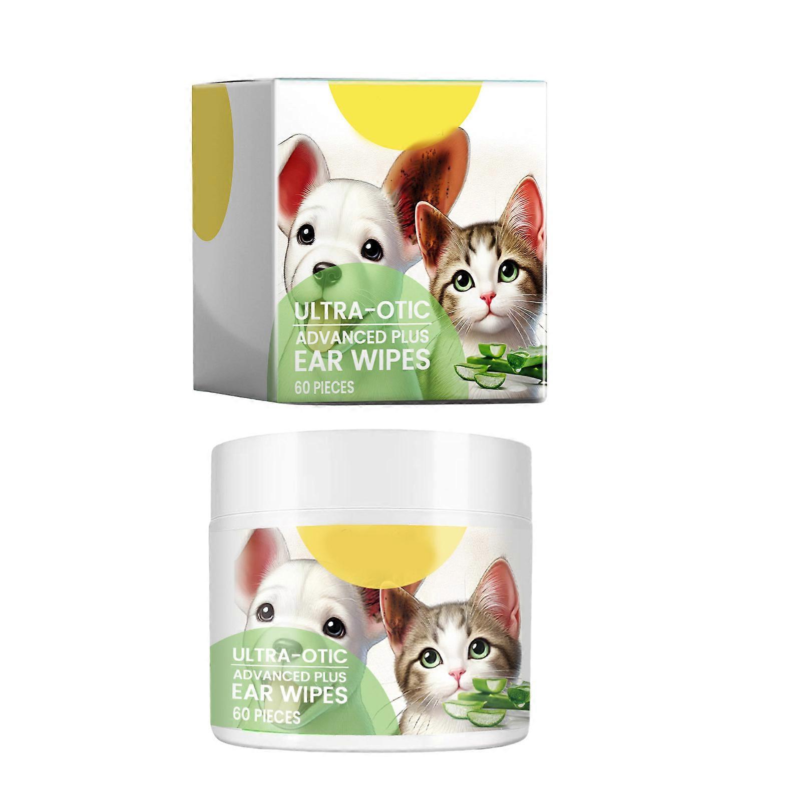Pet Ear Cleaner Wipes Ear Cleansing Wipes for Dog Cats 60PCS/Bottle Ear Care Solution Wipe Natural Itching Relief Multicolor