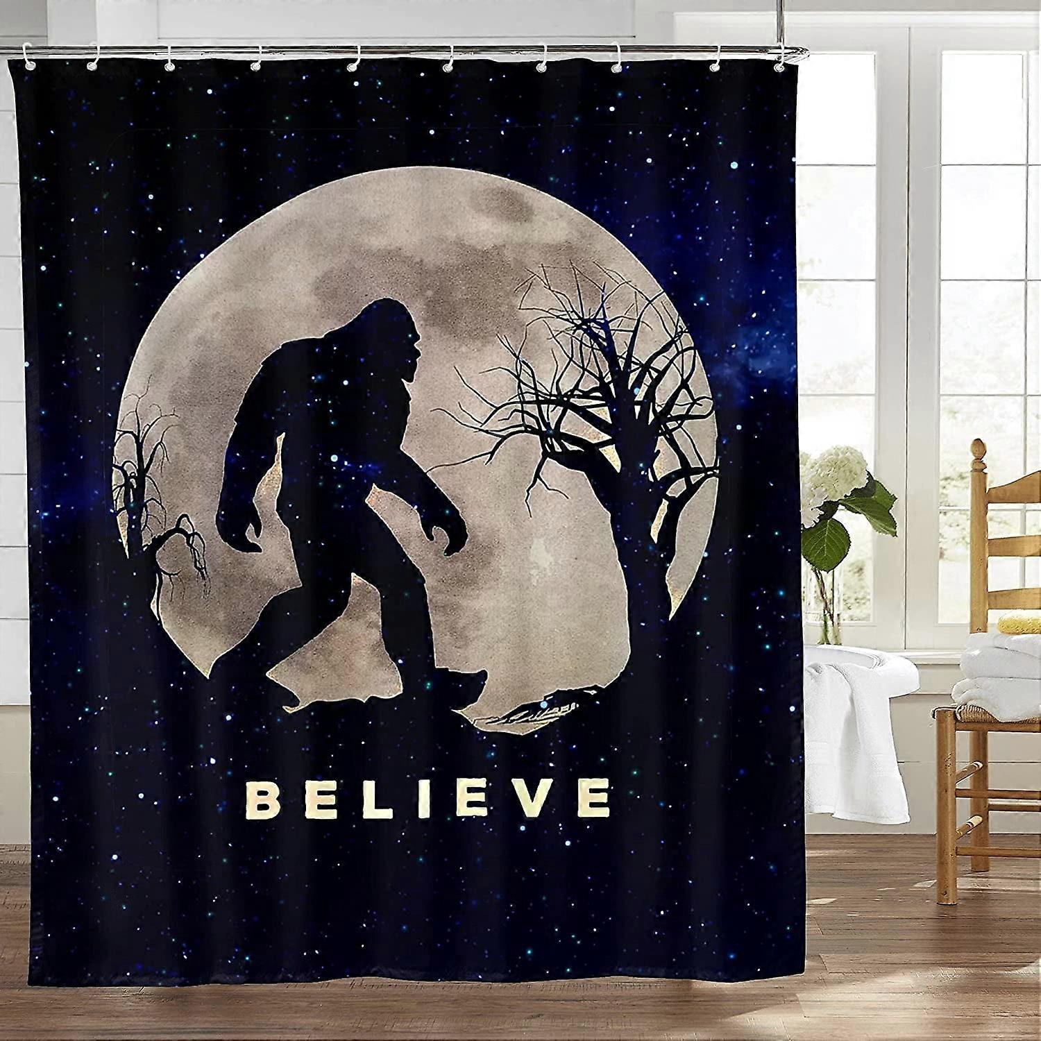 Funny Bigfoot Sasquatch Shower Curtain 60x72 in Waterproof Polyester, compatible with standard tubs. Includes 12 plastic hooks.