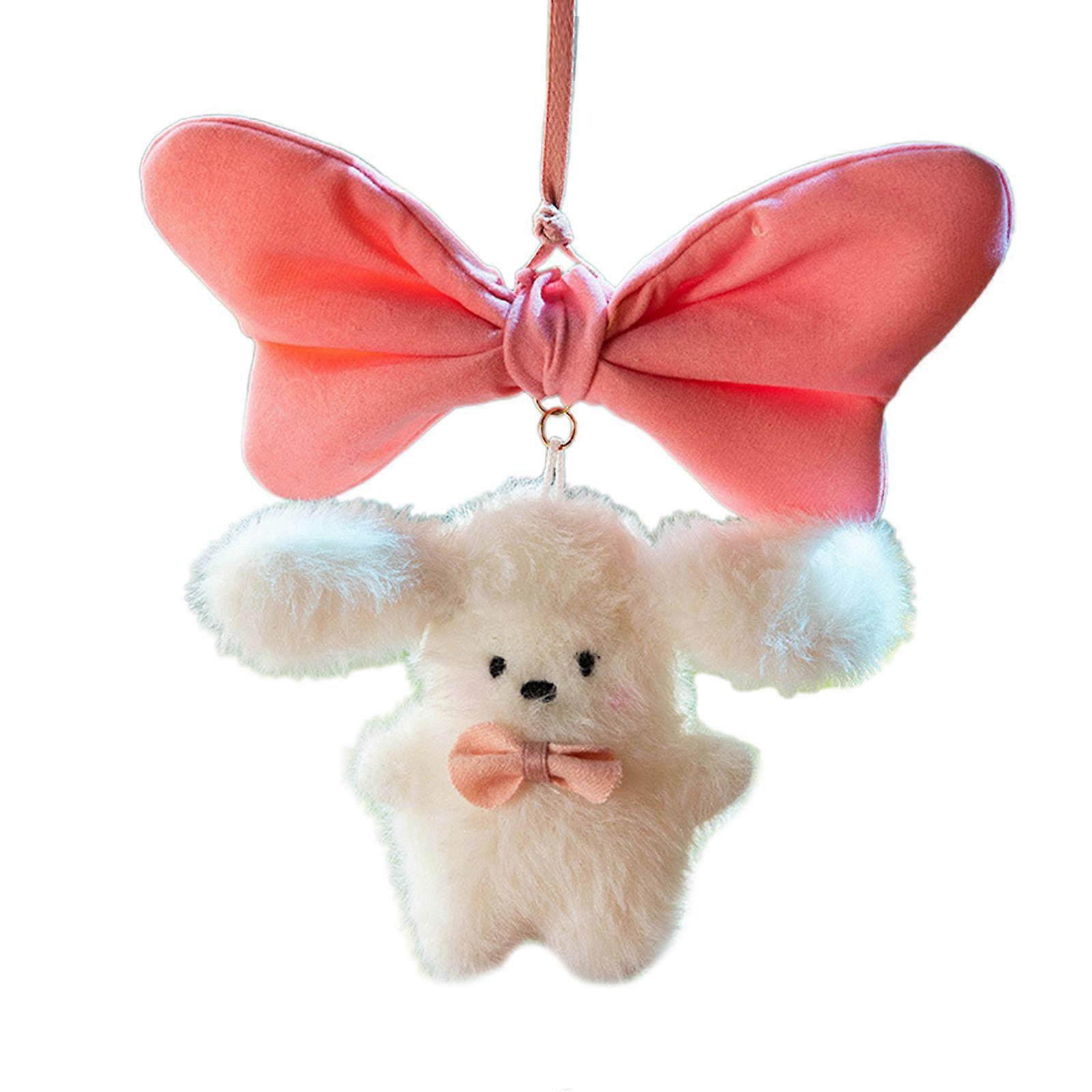 Hanging Decoration Rear View Mirror Cute Rabbit Ornament Pendant Car Interior Decorative Accessory Plush Bunny- Keychain Multicolor