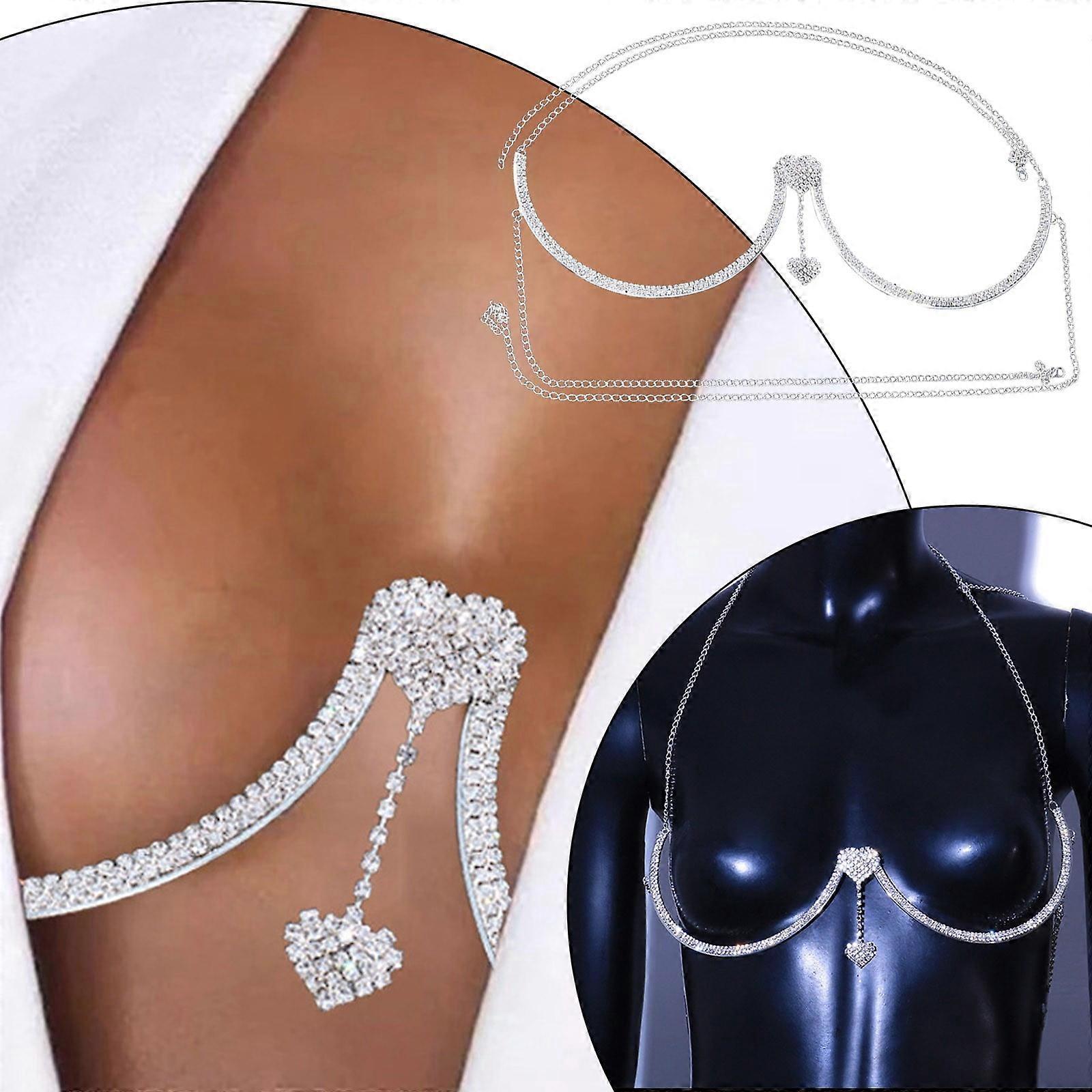 2023 New Summer Rhinestone Chest Bracket Chain Trendy Heart Pendant Chest Bracket Bra Chain Sexy Bikini Bra Body Chain Jewelry For Women