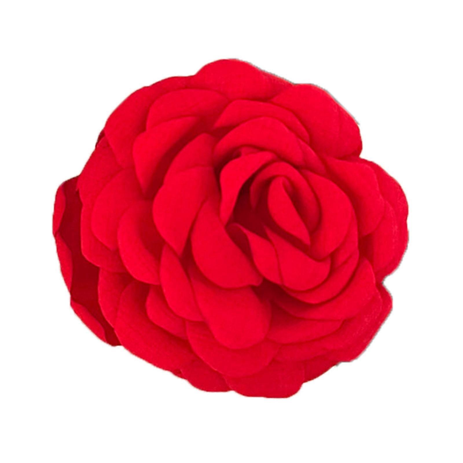 Lovely Hair Claw for Girls Non-slip Hair Barrettes for Taking Photo Romantic Cloth Flower Shape Design Hair Pins Red 9CM