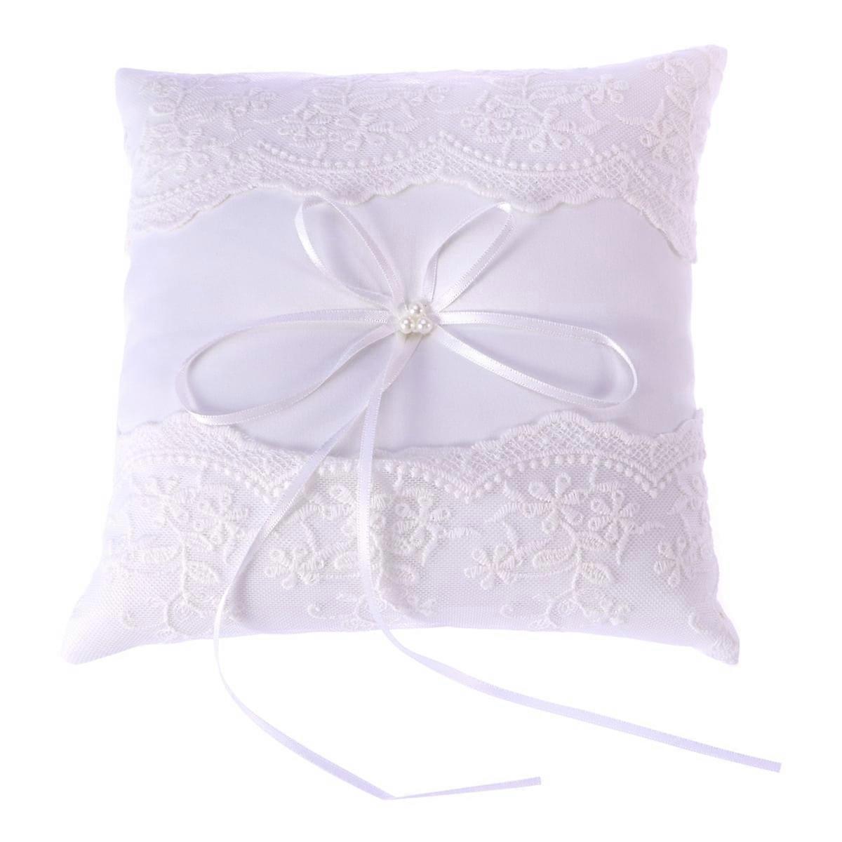 Eease 20x20cm Wedding Ring Pillow Cushion Bridal Pearl Ribbon Decorated Ring Bearer Pillow
