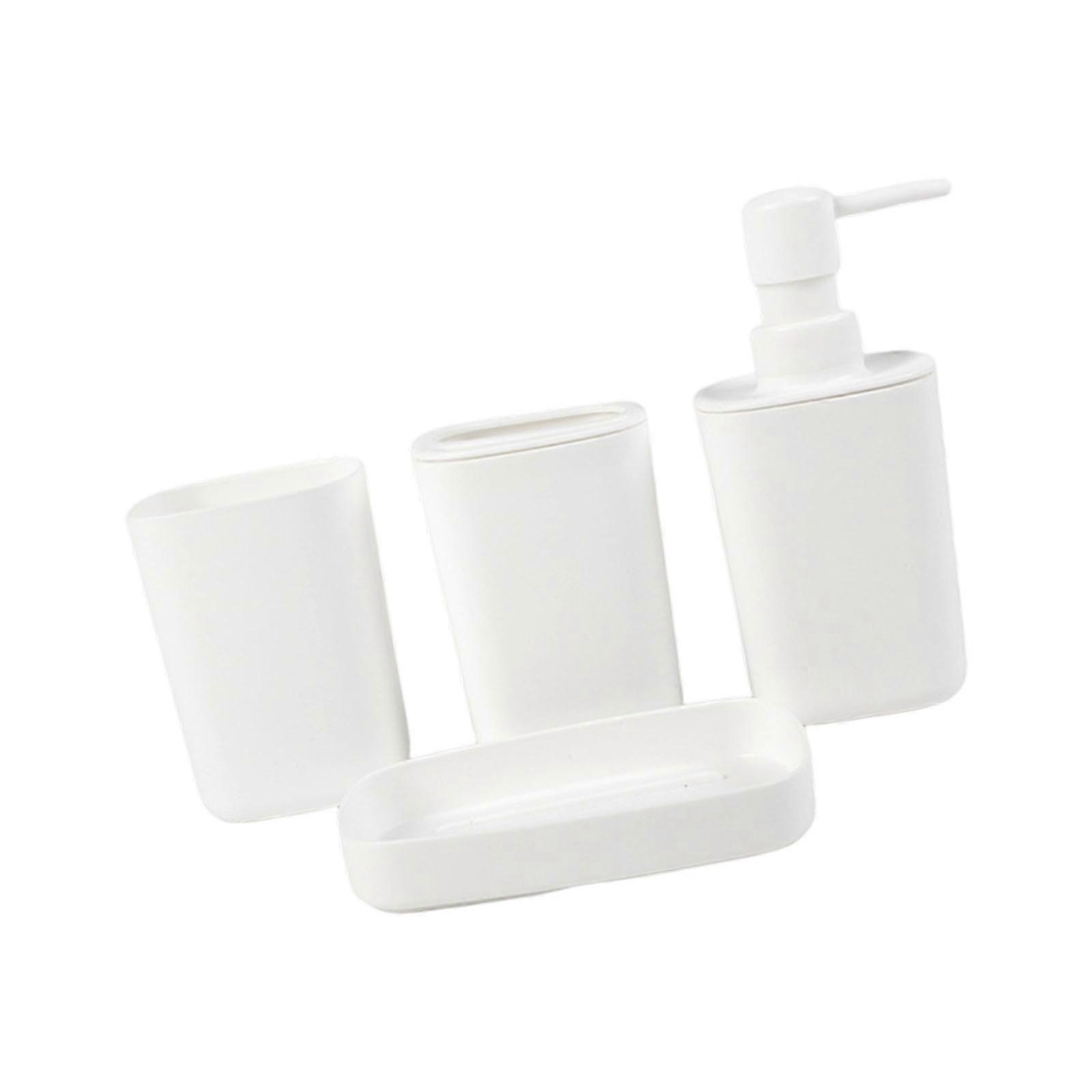 Plastic Bathroom Set 4pc Pump Bottle Toothbrush Stand Organized Cup Storage For Small White