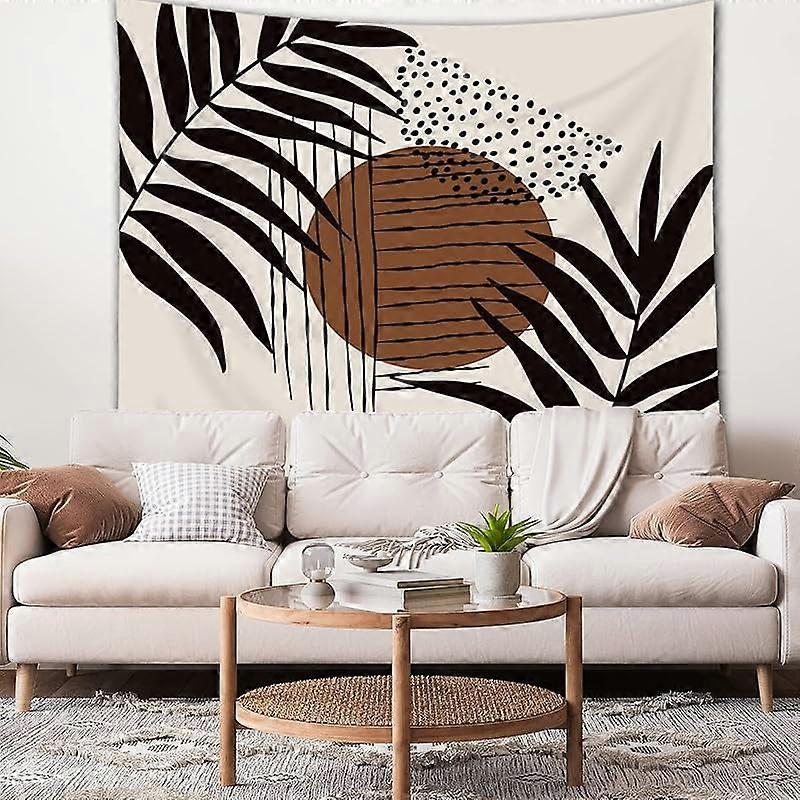 Mid Century Modern Fabric Wall Hanging Tapestry, Abstract Sun Leaves Brown Geometric Black Art Dot Minimalist Vintage Boho Palm, Bedroom Dorm Living