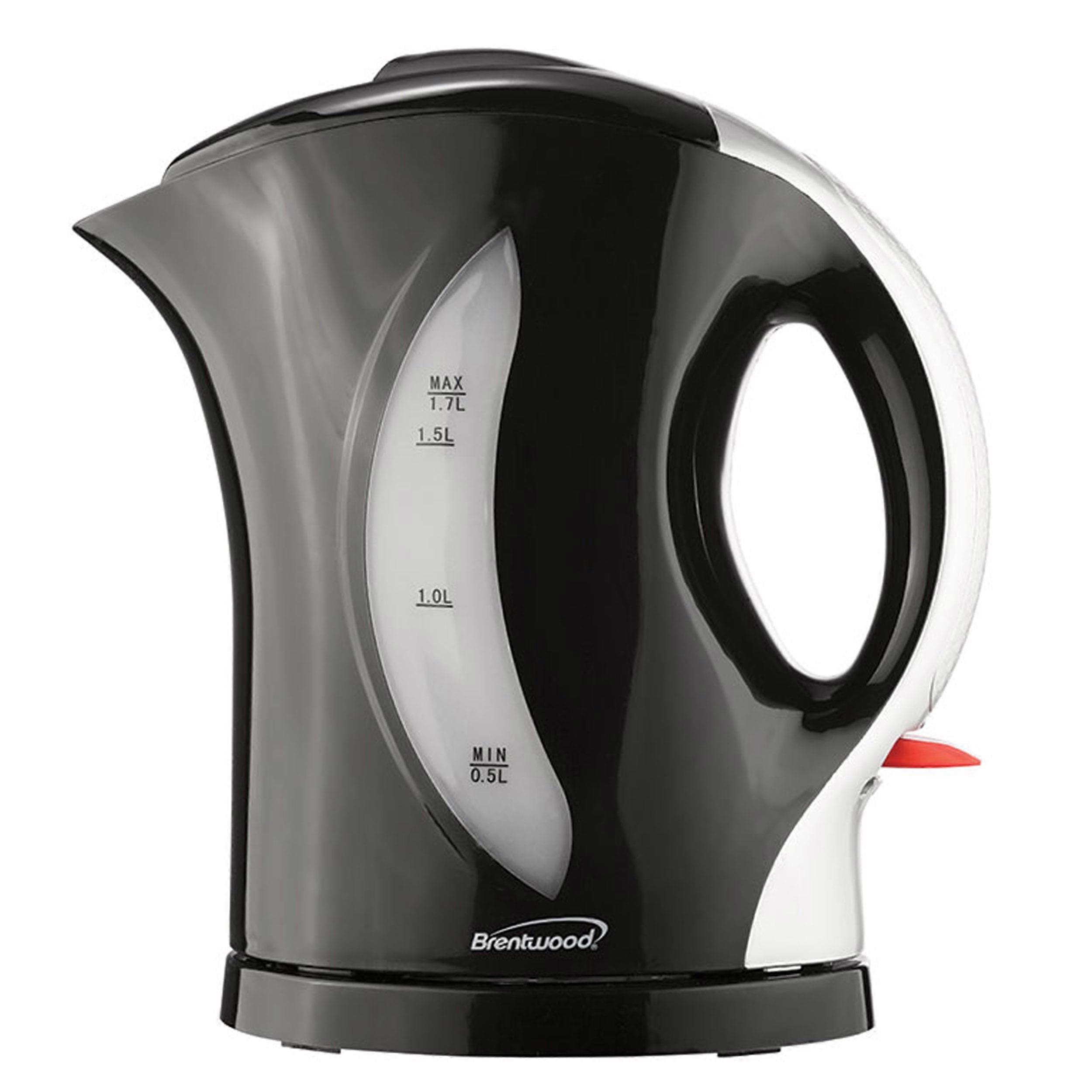 Brentwood 1.7 Liter Cordless Plastic Tea Kettle in Black with Silver Handle