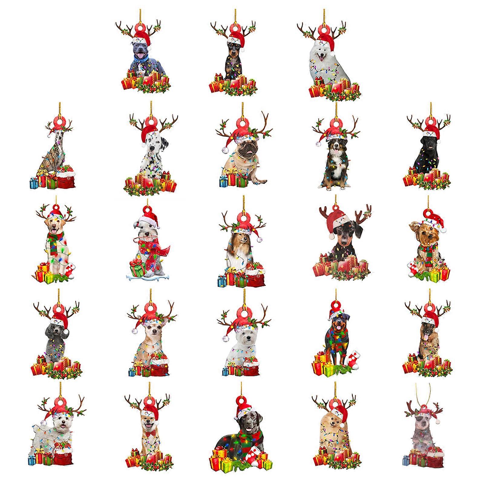 Christmas Dog Ornament Wooden Xma Tree Hanging Sign Statues Decorations Nativity Party DIY Blessing Puppy Pendant Sculptures Gift Multicolor
