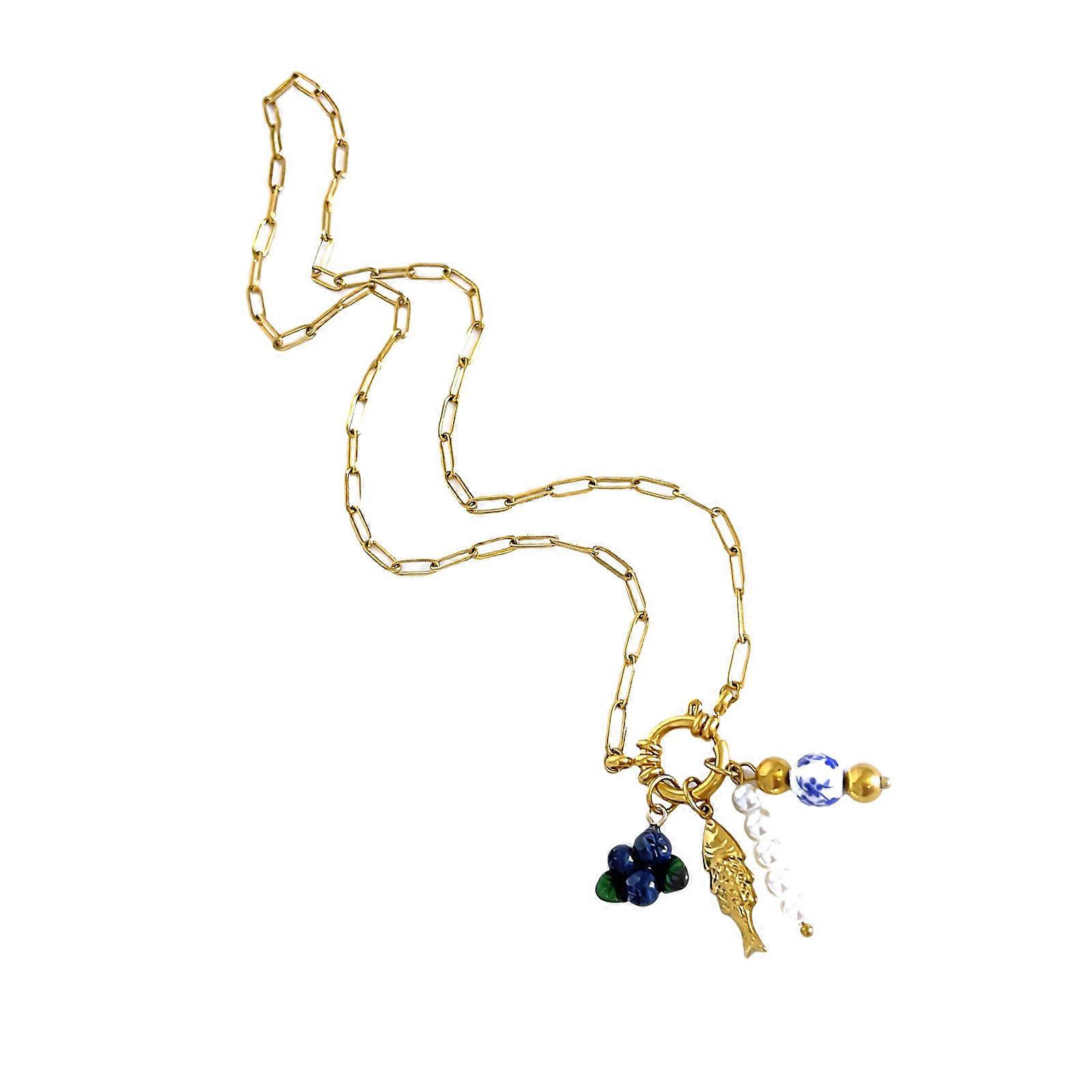 Stylish Women Necklace with Imitation Pearls and Unique Grape Blueberry Shell Pendant Stainless Steel Texture for Daily Multicolor