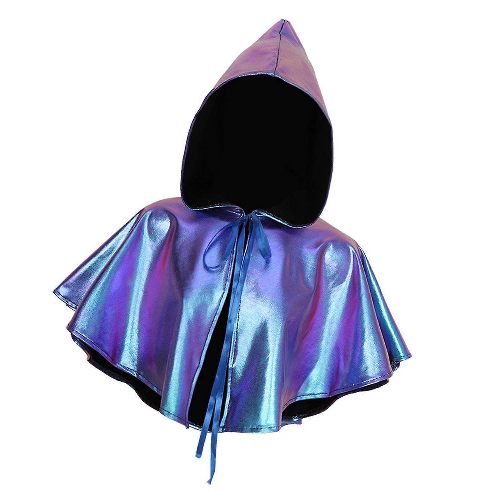 Grim Reapers Costume Hooded Capes Witch Vampires Cloak Halloween Cosplay Costumes Hooded Poncho for Roleplay Party Laser Blue Adult size per perso