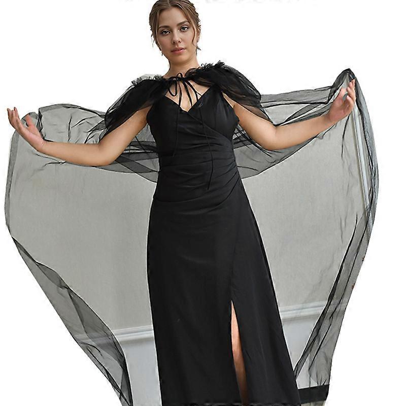 Black Witch Tulle Cloak Halloween Cosplay Witch Vampires Costumes Full Length Hooded Cape Multicolor