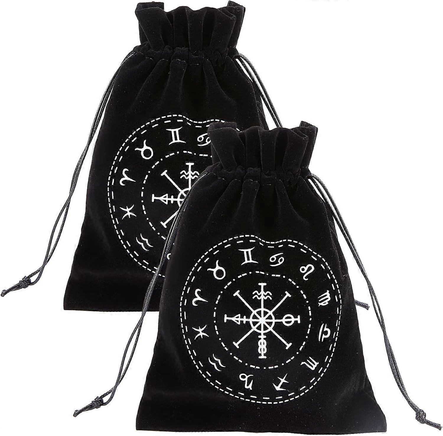 2Pcs Black Tarot Storage Bag Thick Velvet Packing Pouches 12 Constellation Symbol Drawstring Bag Protective Card Board Game Embroidery DIY