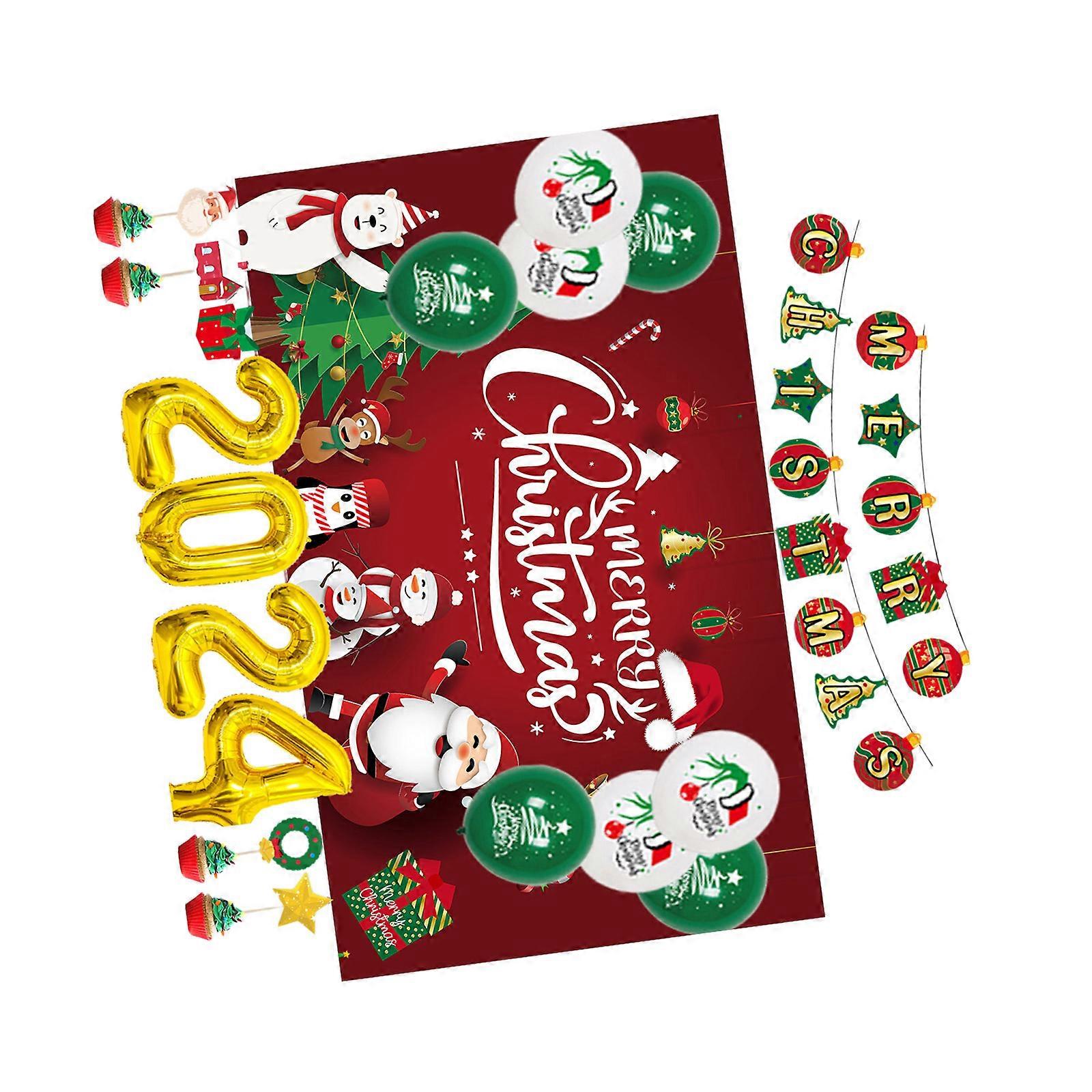 Christmas Balloon Set Cartoon Pattern Printed Latex Ballon with Banner Pull Flag for School and Office Celebrations Multicolor