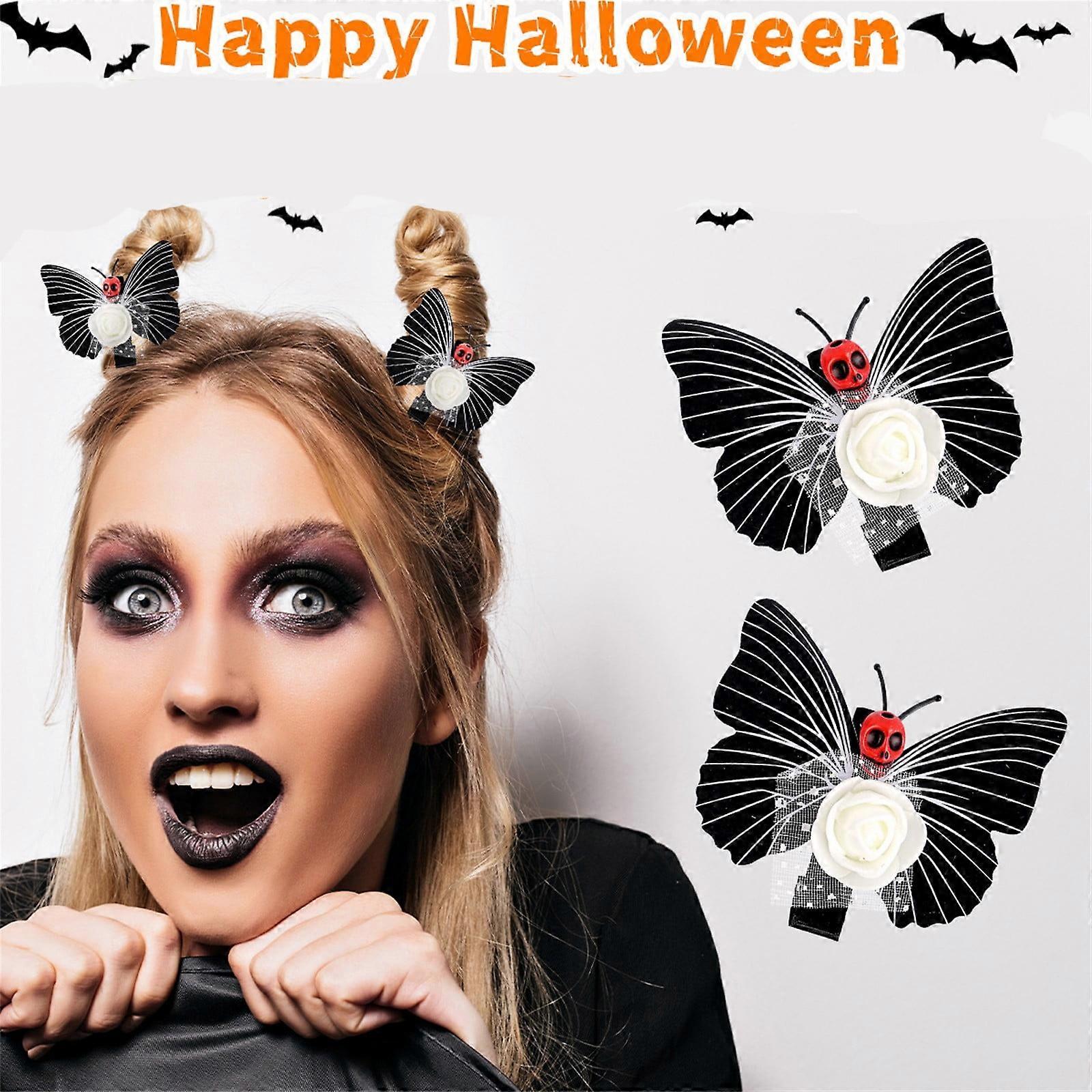 HKUKY Halloween Skulls Butterfly Hairpin Holiday Funny Headwear Party Cos Dress Up Side Hair Clip Decoration