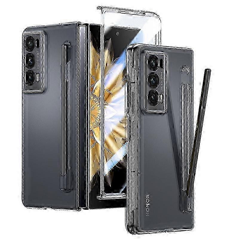 For Honor Magic V2 5G Skin-touch Phone Case with Tempered Glass Film and Stylus z
