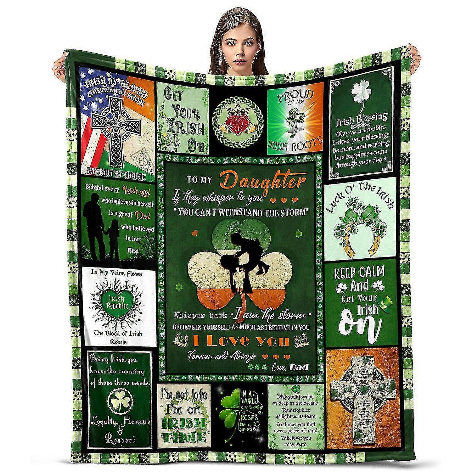 Oasisdream Great Gift Throw Blanket To My Daughter for Home, Office and Sofa from Dad, Skin Friendly with Green Four-leaf Clover Print z