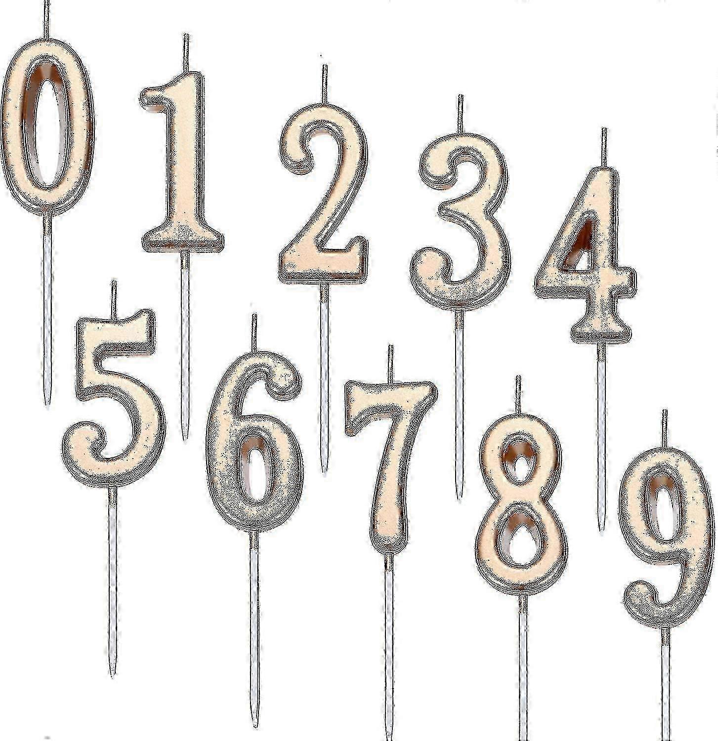 Numbered Birthday Cake Decorations - Champagne Gold 0-9 (10 Pack) Digital Candle z