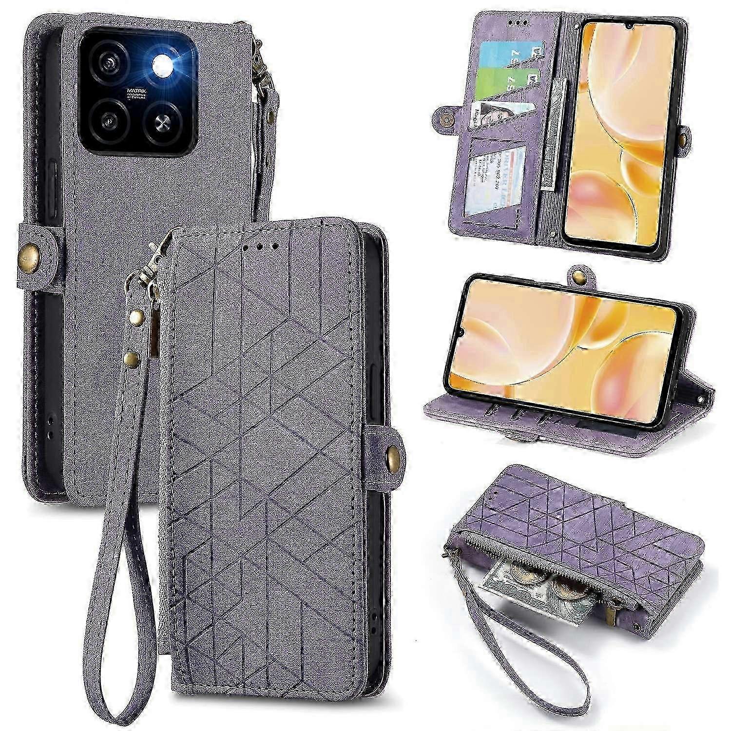 For ZTE Blade A55 Case Zipper Wallet Geometry Lines Leather Phone Cover z