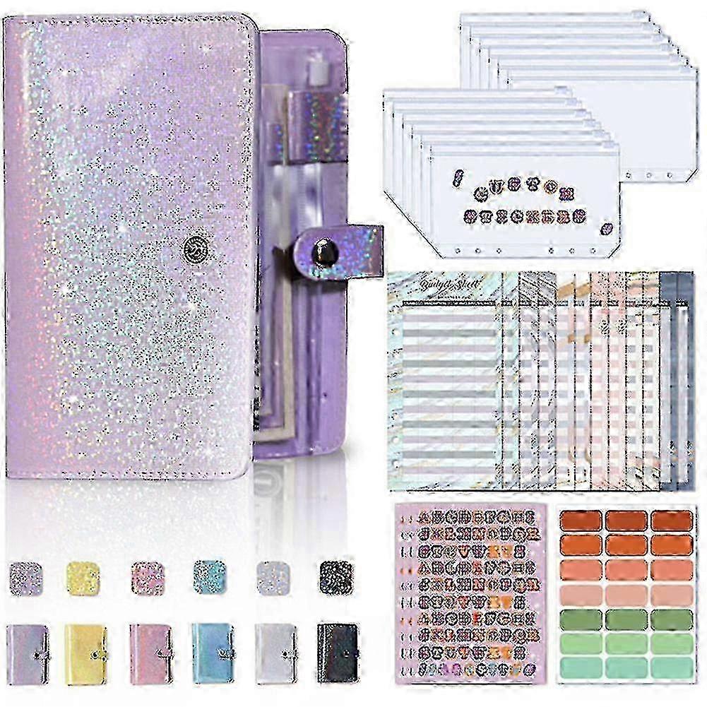Durable material: the binder cover is made of quality PU leather surface which touches smoothly and comfortably Double waterproof layers are tightly laced together The magnetic buckle opens and closes easily while ensuring your privacy The stainless steel binder has 6 round rings which you could add or remove planner sheets flexiblyPretty gift: the loose leaf binder cover is handmade with quality synthetic leather material, which can be as a practical present for Christmas Day, New Year's Day, Valentine's Day or birthday Attractive macaroon colors can make the person who received the gift very happyLightweight and proper size: the loose leaf binders are approx. 7.5 x 5.2 x 1.2 inch, which can keep 100 - 120 sheets of paper They are lightweight and in a proper size that easy for you to hold in hand or put them in your bags and backpacksPackage contents: you will get 6 pieces A6 PU artificial leather notebook binders, which you can make the completely personal notebook about your daily life and your plans, or whatever you want with your own templates They will be quite a practical A6 binder planner to show your personality.Material: PUcolour: PurplePackage Contents:1 x binder1 x label3 x color labels12 x zip pockets12 x budget sheetsOnly the above package content, other products are not included.Note: Light and different displays may cause the color of the item in the picture a little different from the real thing. The measurement allowed error is 1-3cm. Note: Due to the light and screen setting difference, the item's color may be slightly different from the pictures. Please allow slight dimension difference due to different manual measurement.