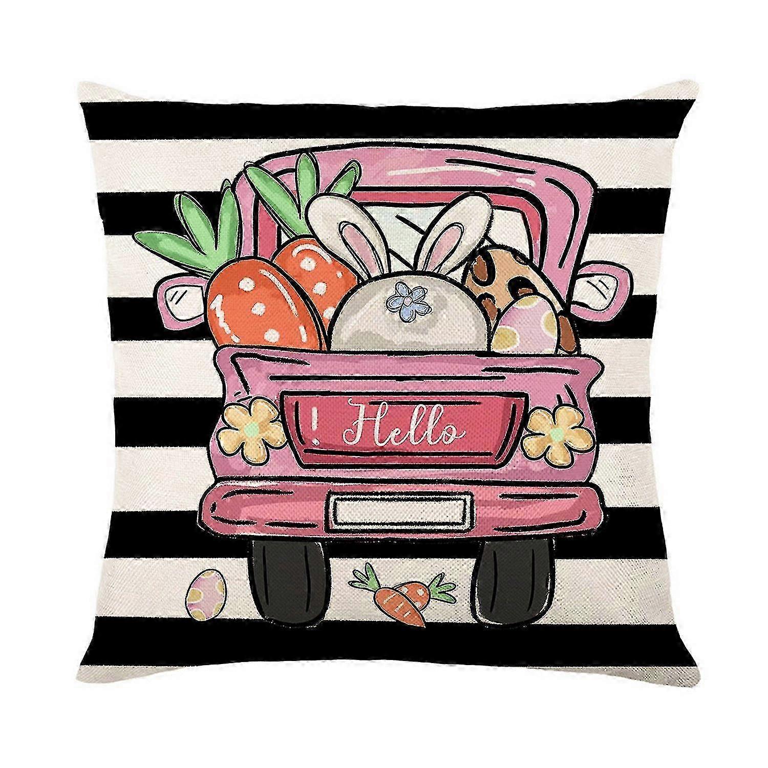 Easter Pillowcase Cute Cartoon Bunny Flower Prints Bedding Decoration Linen Sofa Cushion Cover Squar z