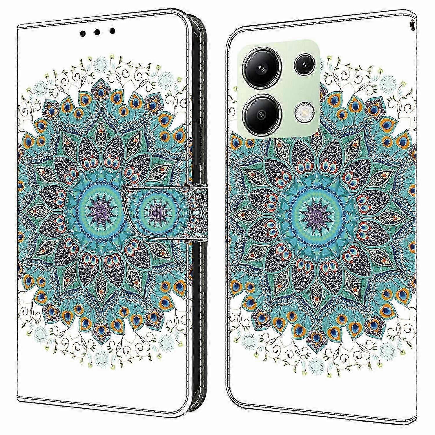 For Xiaomi Redmi Note 13 4G Case Pattern Printing Anti-Drop Leather Flip Wallet Phone Cover-Peacock z
