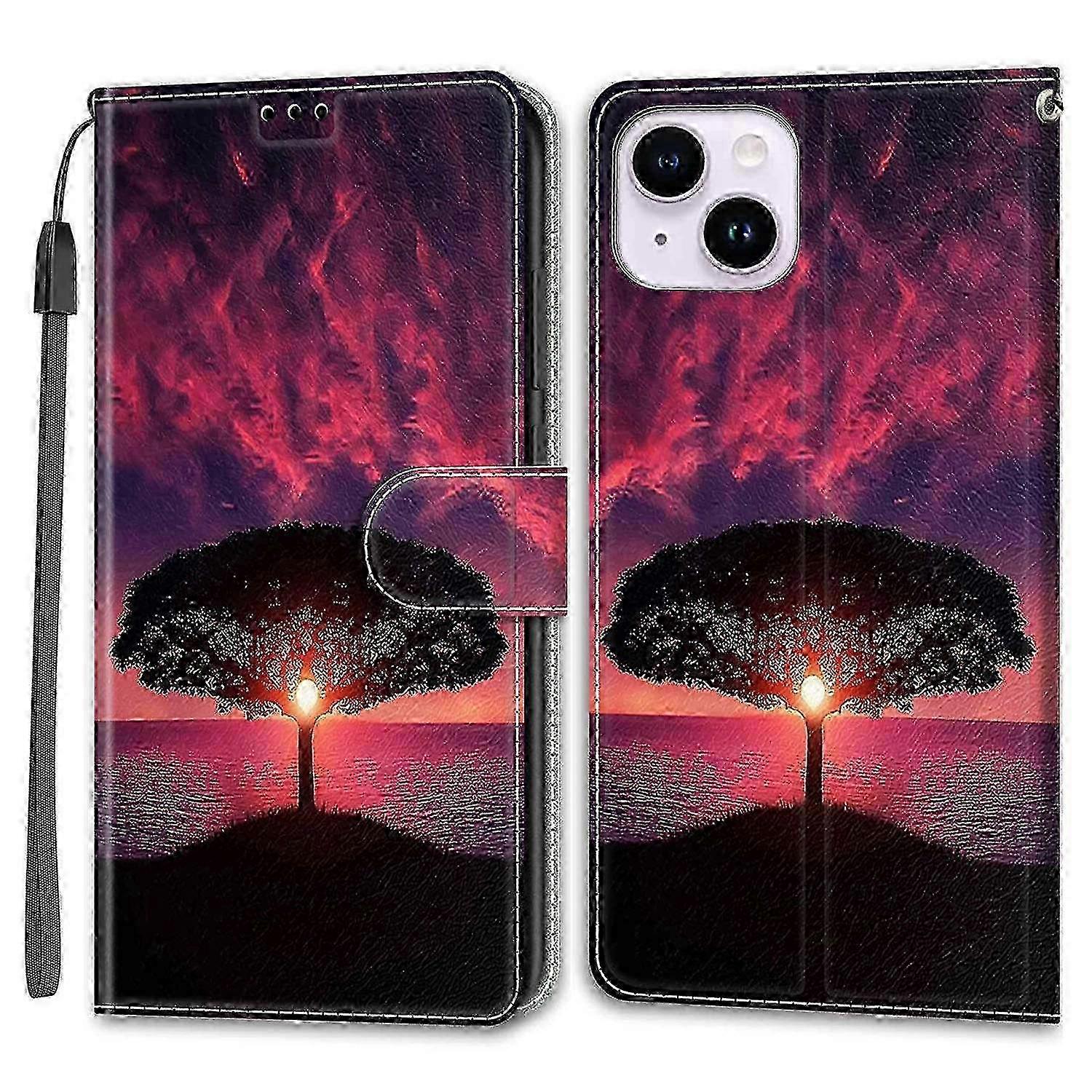 Leather Case for iPhone 14 , Pattern Printed Card Holder Stand Phone Cover - Black Tree or Sunset •High-quality PU leather and soft TPU material with fine stitching, presenting an elegant appearance •Distinctive pattern, adds more stylish elements to the device •There are 2 card slots for your convenient swiping and spending on the go •Supporting stand design is for convenient free-hand use when watching movies or reading •Secure magnetic flap closure keeps all your valuables safe inside •Raised lip protection keeps the camera lens protected on a flat surface •Reserved receiver cutout allows you to answer phone calls with case closed •Handy strap on the side for convenient and safe carrying Package included: •1 x Phone Case •1 x Strap •Other items not included Note: Due to the light and screen setting difference, the item's color may be slightly different from the pictures. Please allow slight dimension difference due to different manual measurement.
