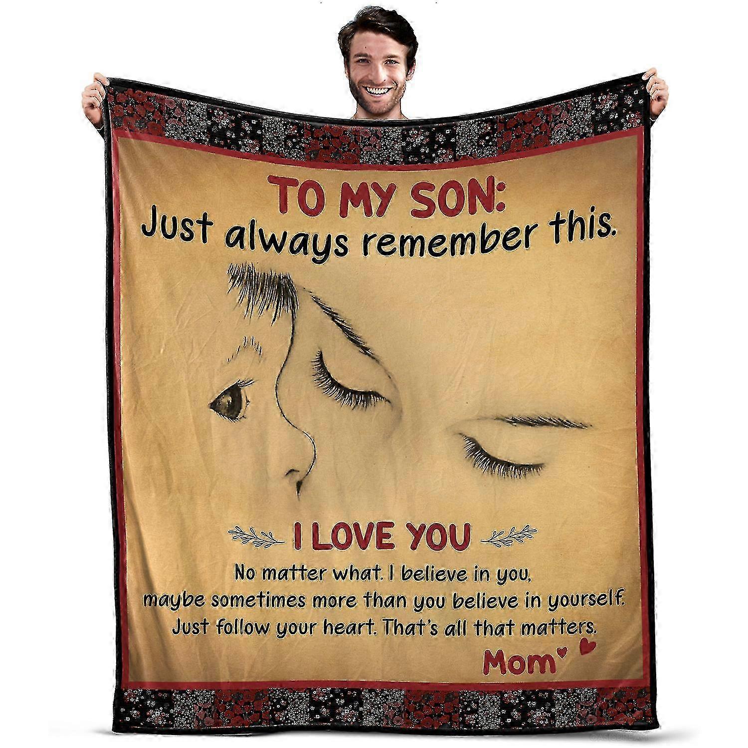 Oasisdream Throw Blanket To My Son for Sofa, Office, Outdoor Use, Birthday Gift for Him from Mom with Heartwarming Photo Print z