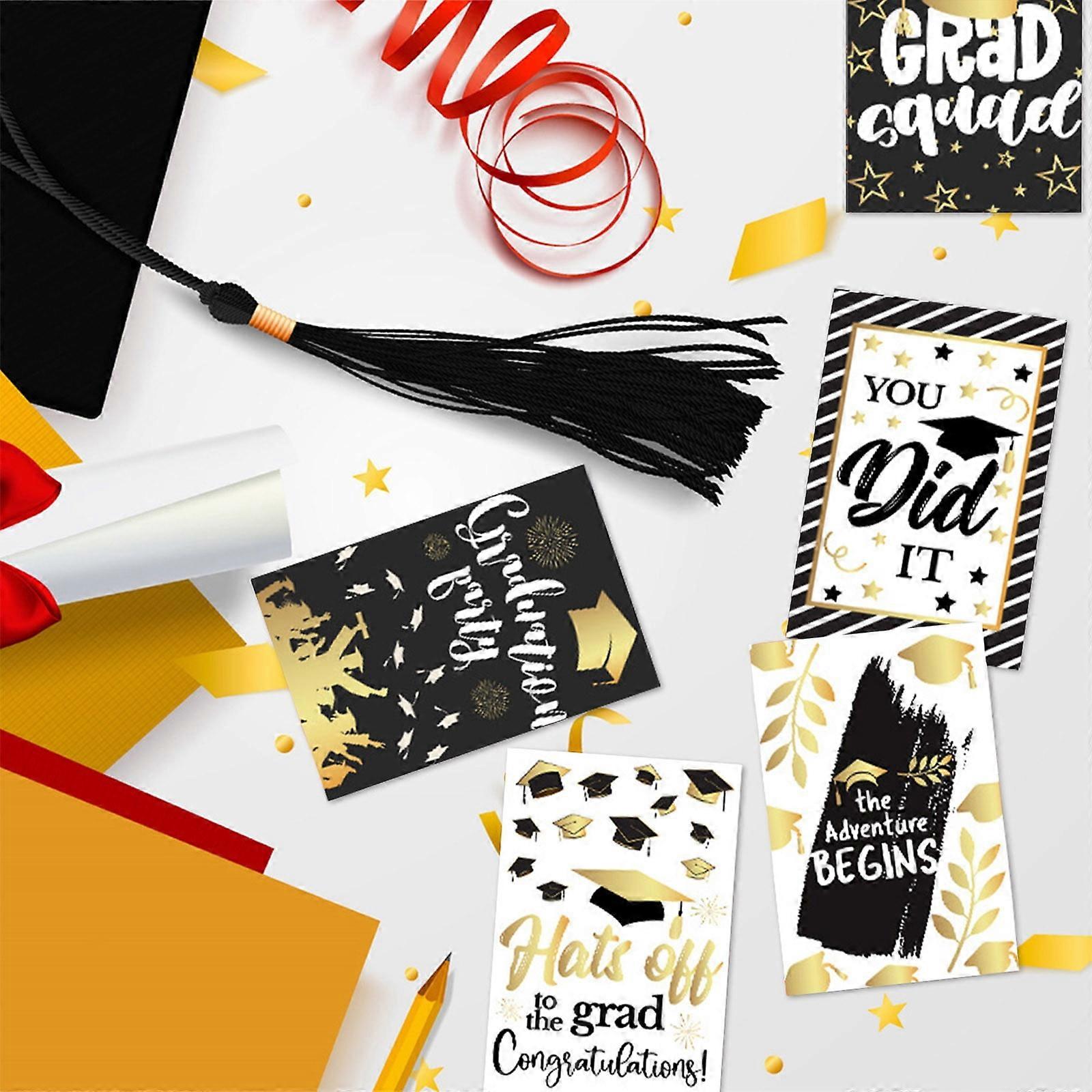 HKUKY 12 PCS Graduation Season Message Card,Graduation Cards Assortment, Black And Gold, Congratulations Grad With Envelope
