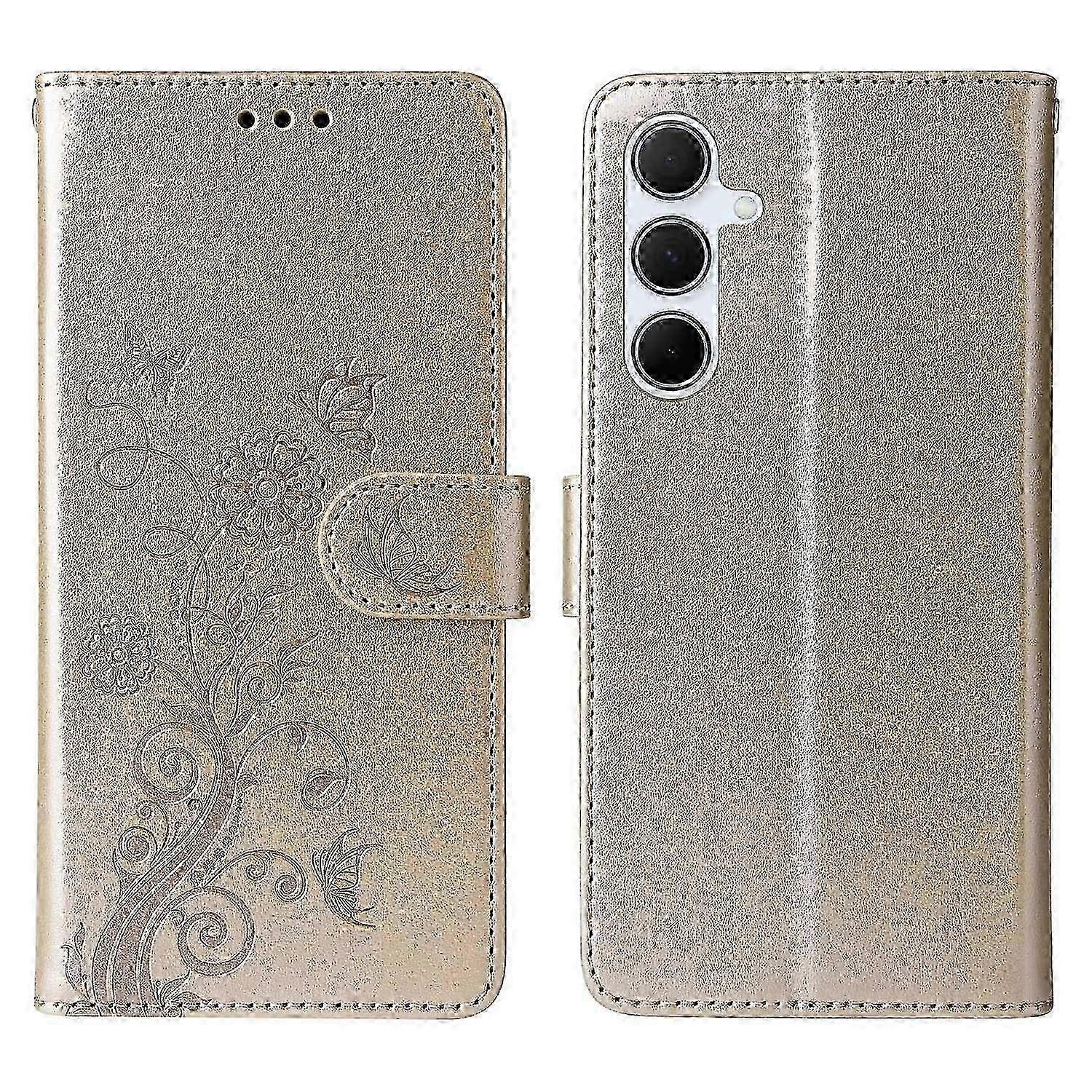 For Samsung Galaxy A36 5G Leather Case Butterfly Floral Imprint Wallet Stand Cover-Gold z