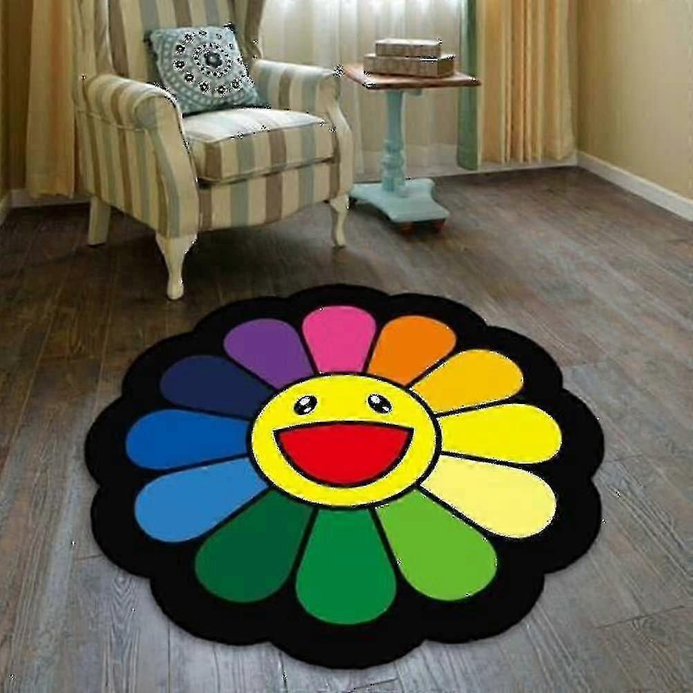Chair Mat Takashi Murakami Sunflower Cool Floor Rug Carpet Room Doormat Non-slip (120cm X 120cm) JNX z
