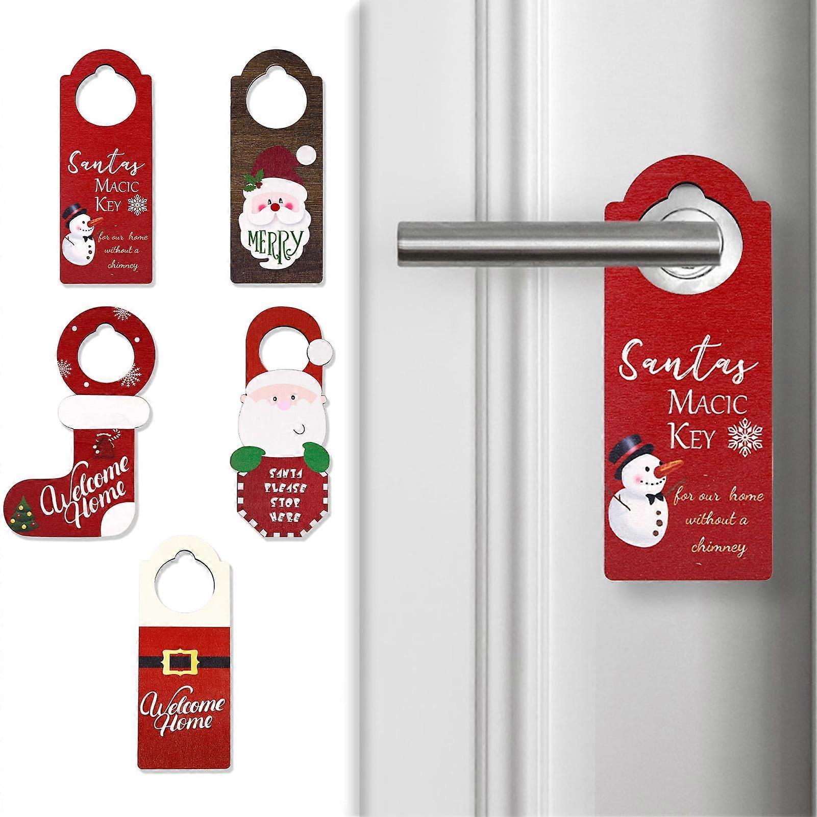 SUSUchens Christmas Wooden Doorknob Decoration Santa Claus Snowman Stocking Holiday Decor Door Handle Hanger Pendant Party Supplies Style E