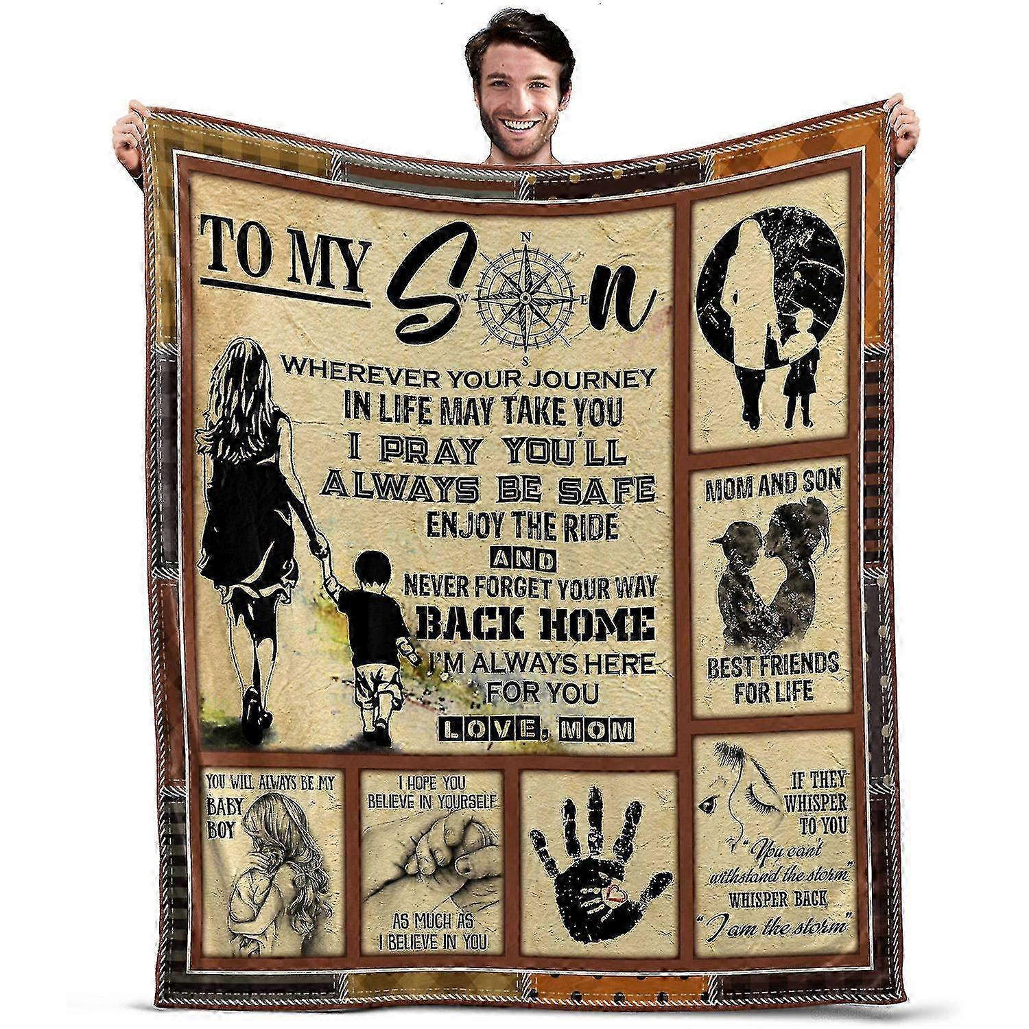 Oasisdream Throw Blanket To My Son for Sofa, Office, Outdoor Use, Birthday Gift for Him from Mom z