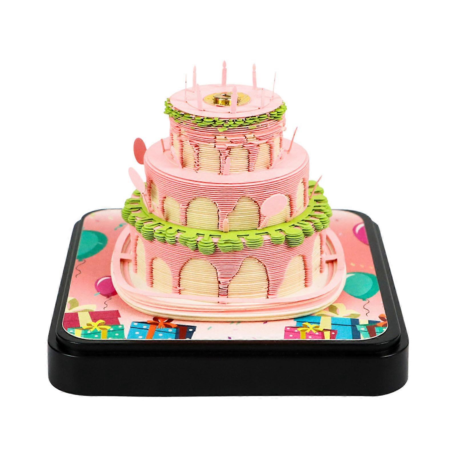Paper Sculpture Birthday Cake Calendar with Tearable Note Pad 2026 Timepiece Calendar for Office and Home Decoration Multicolor