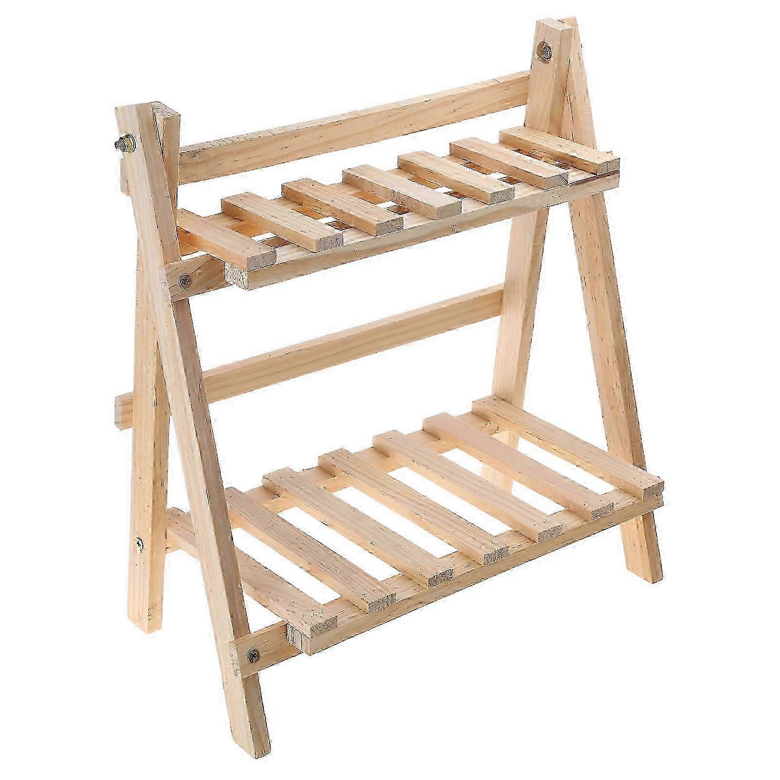 2 Tier Wood Storage Shelf Desktop Wooden Rack Plant Pot Flower Basket Stand log z