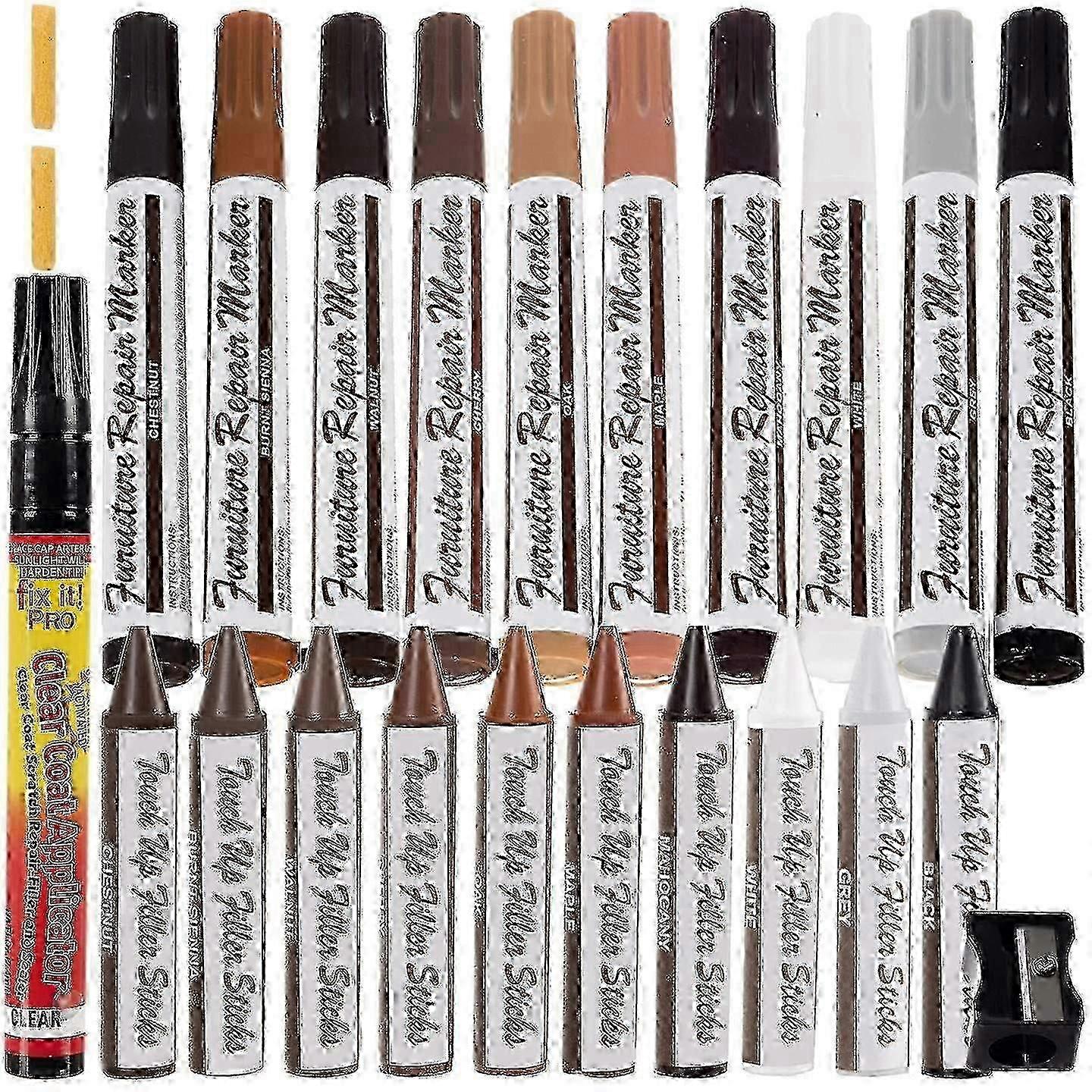 With this repair kit you can hide dull scratches and damage to your wooden floors, tables, doors or wooden furniture. The kit includes wood shades such as mahogany, maple, oak, cherry, walnut, sienna and chestnut along with a black, white and uncolored pencil. Fill in the damage with wax chalk and then paint over with a suitable wood shade. - Hides scratches, cracks and minor damage - Includes a variety of wood shades - Easy to use Specifications: Color: Multicolored Material: Plastic Includes: 11 pencils, 10 wax crayons, pencil sharpener Note: Due to the light and screen setting difference, the item's color may be slightly different from the pictures. Please allow slight dimension difference due to different manual measurement.