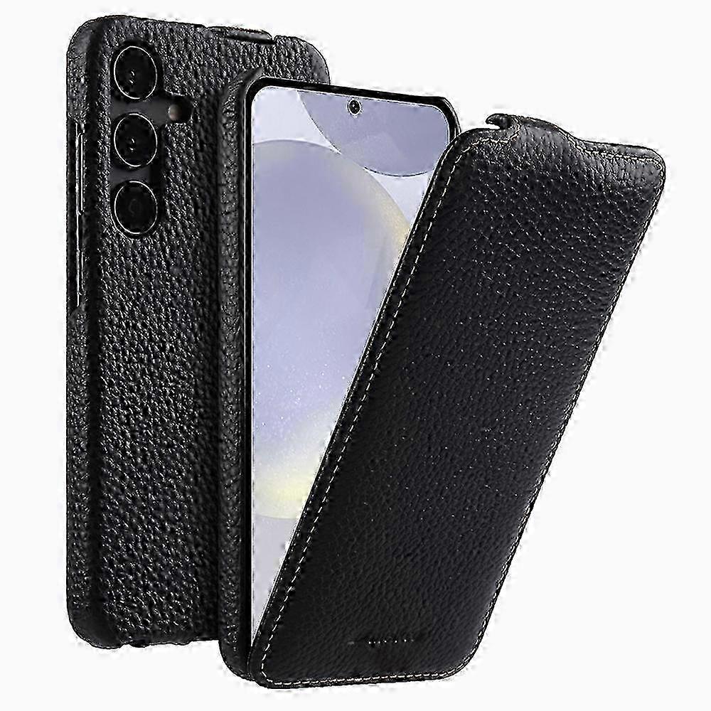 MELKCO For Samsung Galaxy S24 Case Vertical Flip Genuine Cow Leather Phone Cover Full Protection z