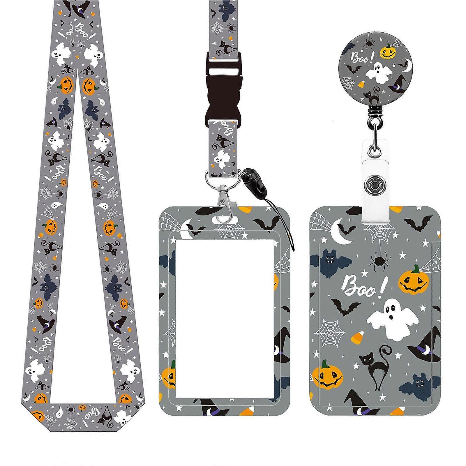 Halloween Card Holder Neck Lanyard Teacher Lanyard Pumpkins Neck Strap Retractable Badge Holder for Adults Students Multicolor