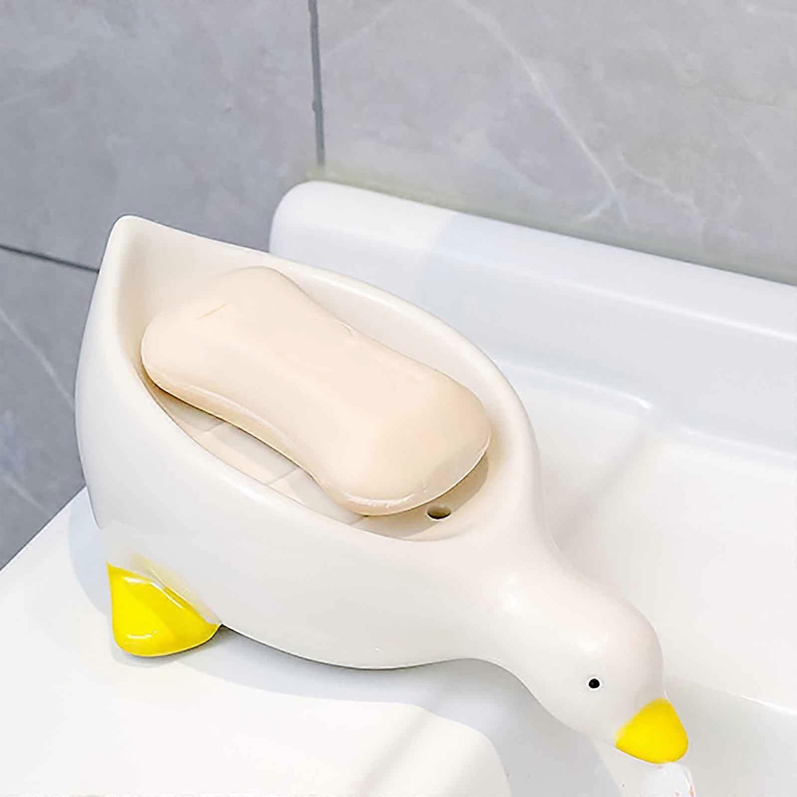 WJSXC Ceramic Soap Box Cute Soap Box Rack Bathroom Water Soap Dish Holder,Easy To Clean Keeps Soap Dry,for Shower Bathroom Kitchen Sink White