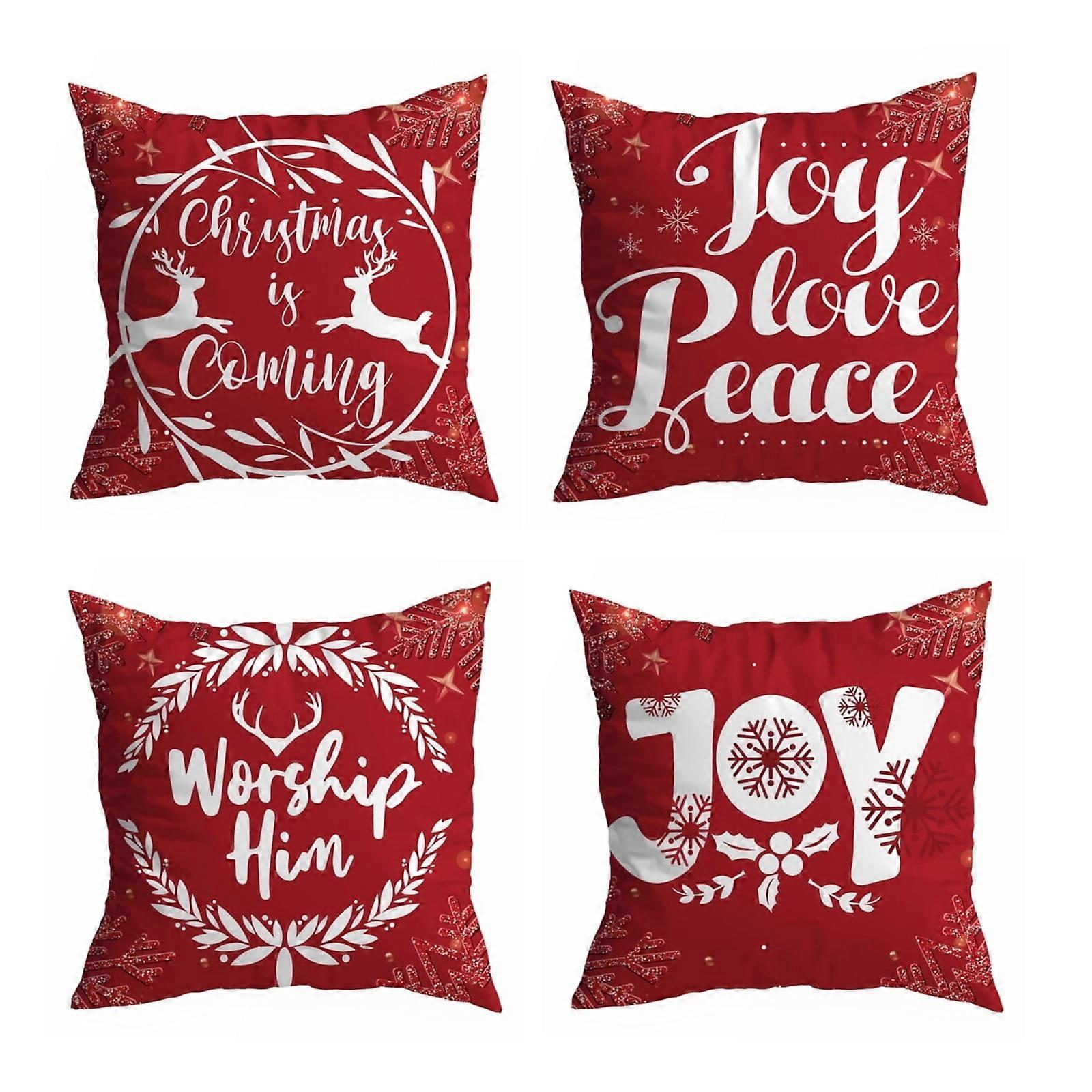 Yakbaofuo 4Pcs 18x18" Christmas Pillow Covers, Red Winter Letter Print, Decorative Sofa Cushion Cases for Holiday Decor