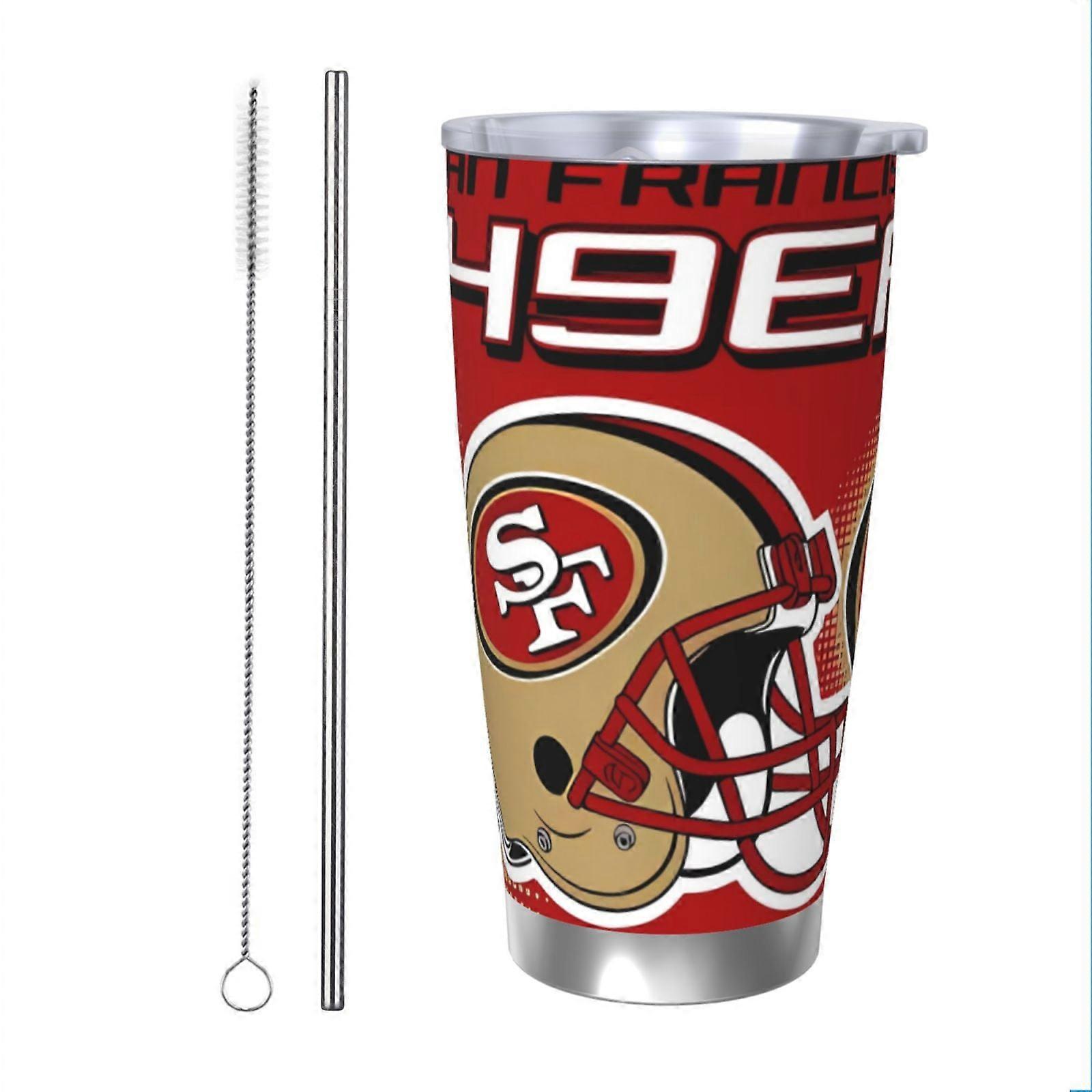 SF 49ers 20oz Stainless Steel Thermos Cup with Lid & Straw - Compatible with SF 49ers, Durable Hot/Cold Sports Coffee Mug, Car Cup, Holiday Gift