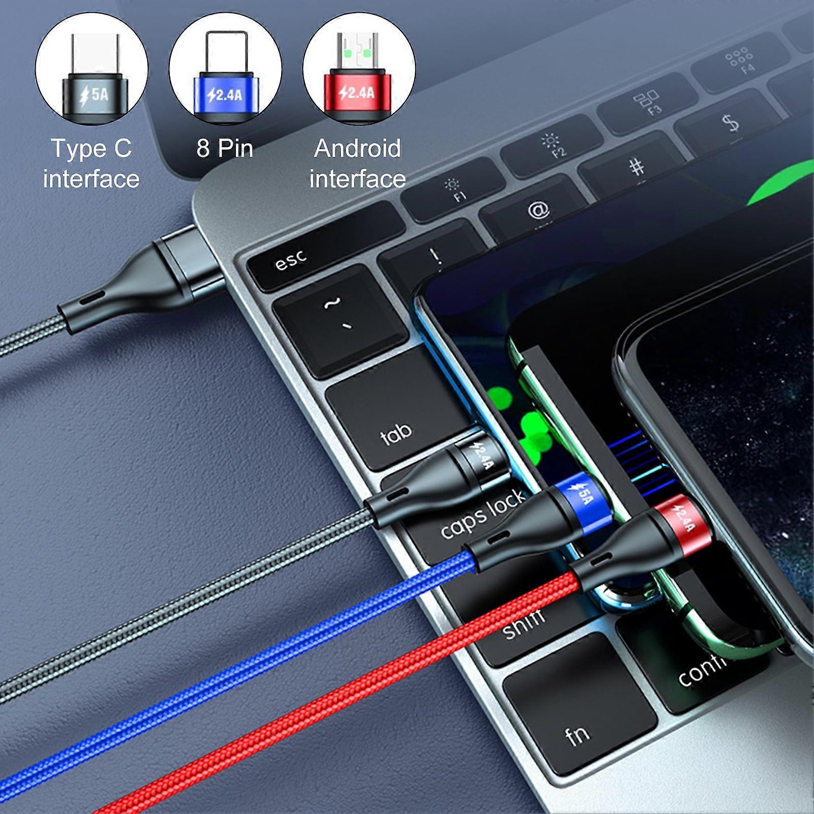 SUSUchens Data Cable 5A Super Fast Charging 3 in 1 Durable Braided Smart Chip Type C/8 Pin/Micro USB Charging Cable