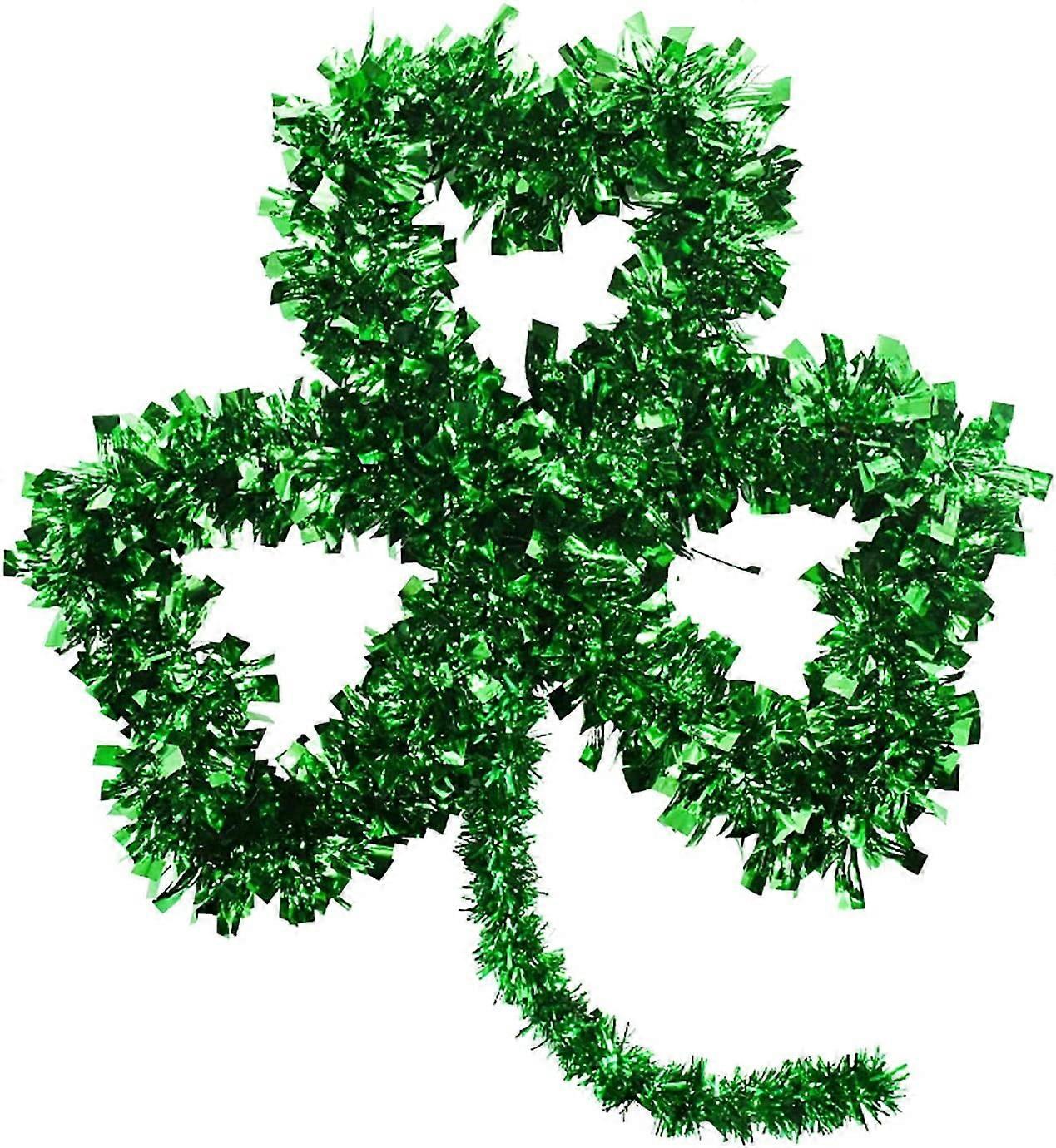 Juesi Saint Patricks Day Wreath, Green Tinsel Hat Clover Shamrock Garland for Outdoor Wall Front Door Party Hanging Decor (Shamrock), Medium
