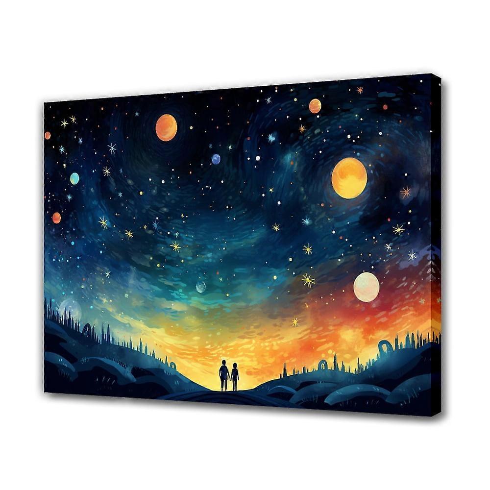 A Couple Gazing at Starry Sky with Vibrant Planets Canvas Poster, 12x18in - Compatible with Room Decor Themes