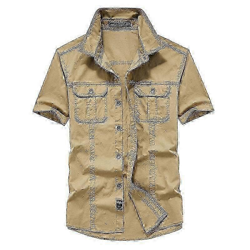 Cotton Men's Shirt Solid Color Multi-Pocket Cargo Shirts Fashion Outdoor Casual Short Sleeved Shirts for Men New Plus Size M-8XL